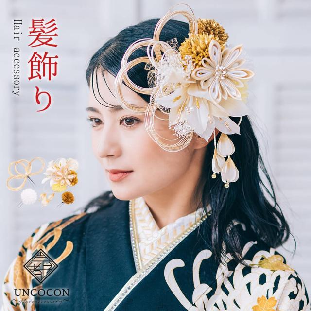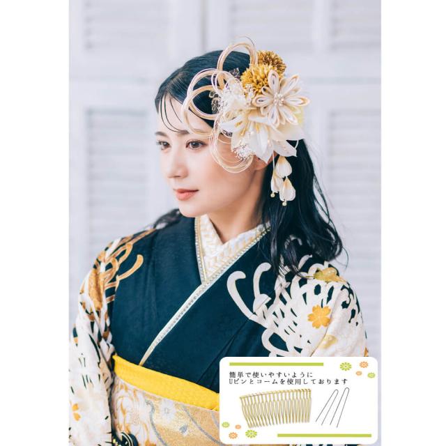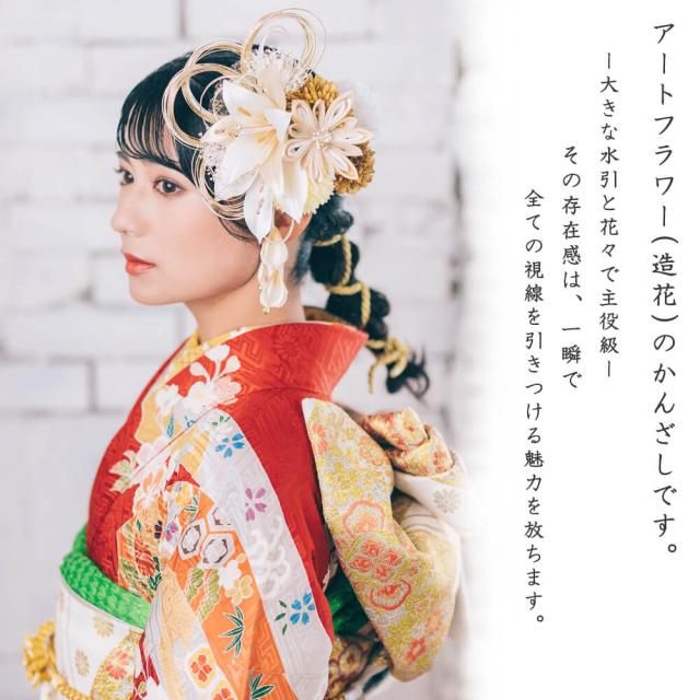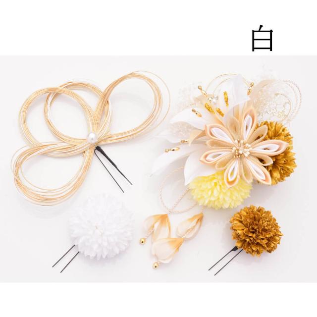 髪飾り 成人式 百合 水引 振袖 前撮り 袴 花 白 ホワイト 大きい つまみ細工 Uピン コーム ウエディング 卒業式