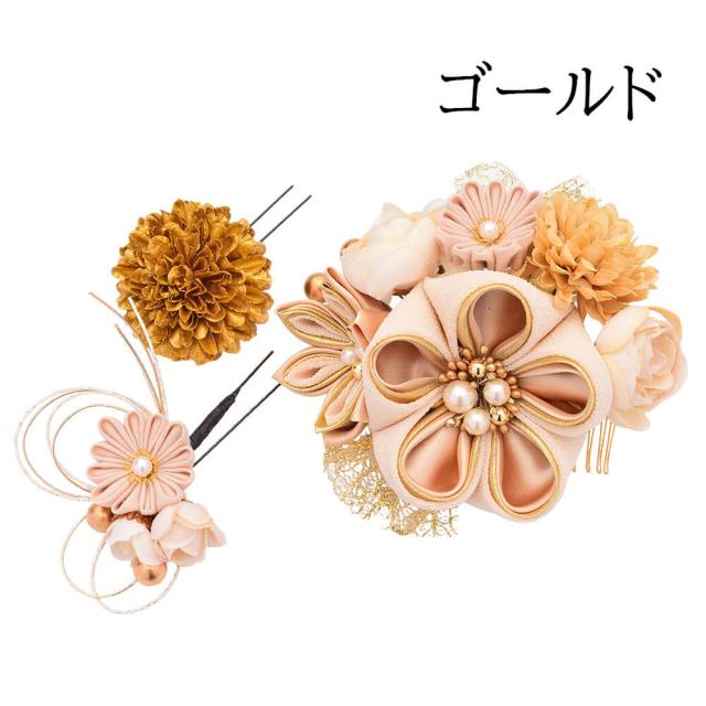 成人式 髪飾り 3点セット 和装 花 髪留め コサージュ