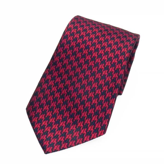 京都西陣織 ネクタイ シルク100% 赤×濃紺/千鳥格子 メール便OK NJ-CD03