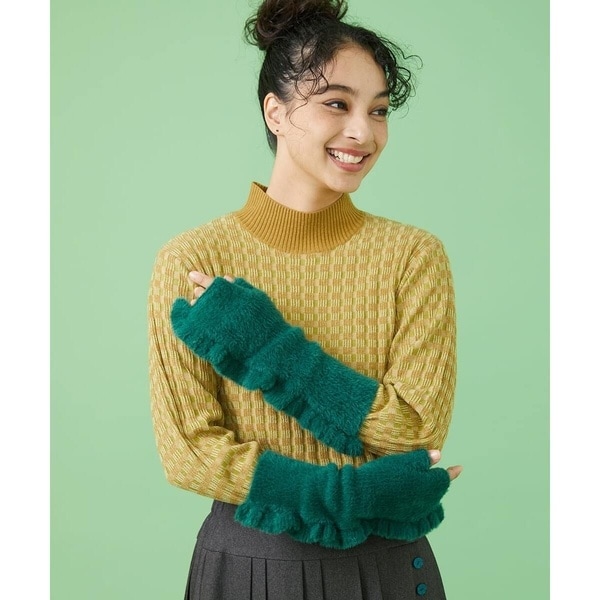 フェイクファーにホコモモラらしいカラーリングが魅力的なアームウォーマー。暖色の組み合わせがお洒落なマルチカラー、深みのある単色が映えるフリル付きのグリーン、どちらもコーデに旬なアクセントを加えてくれます。くしゅっと寄せて着用するのがオススメ。ふわふわで肌触りの良いファー素材で手首をしっかり暖めてくれるアームウォーマーは、これからの季節活躍するマストアイテムです。