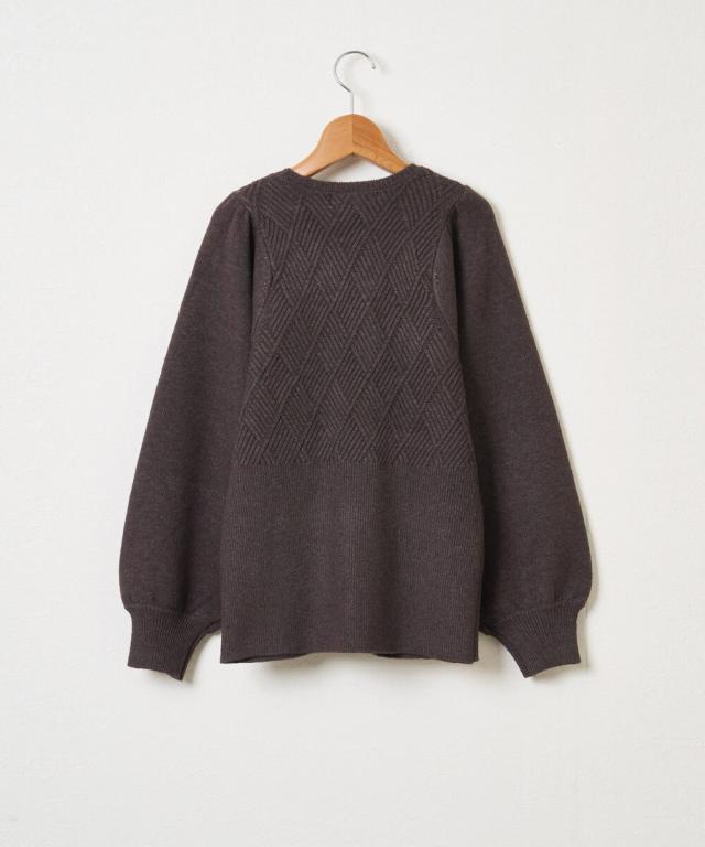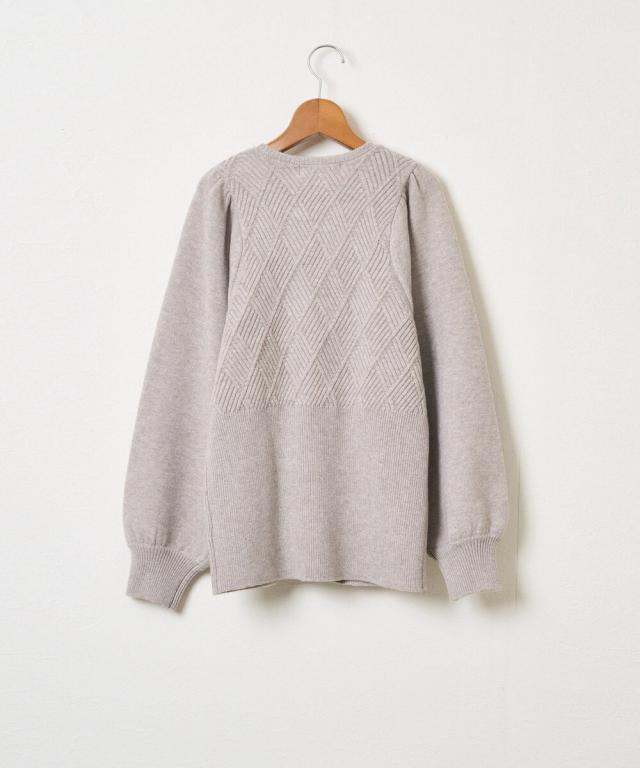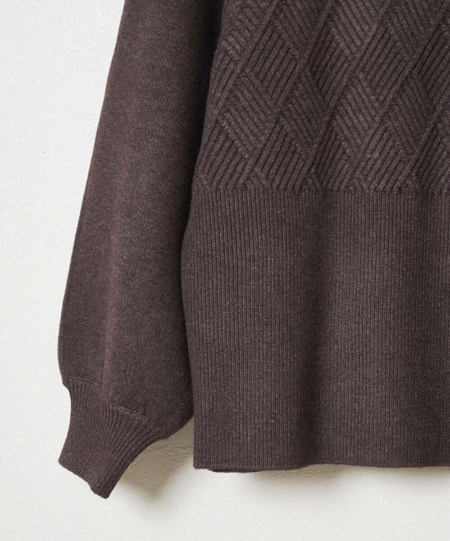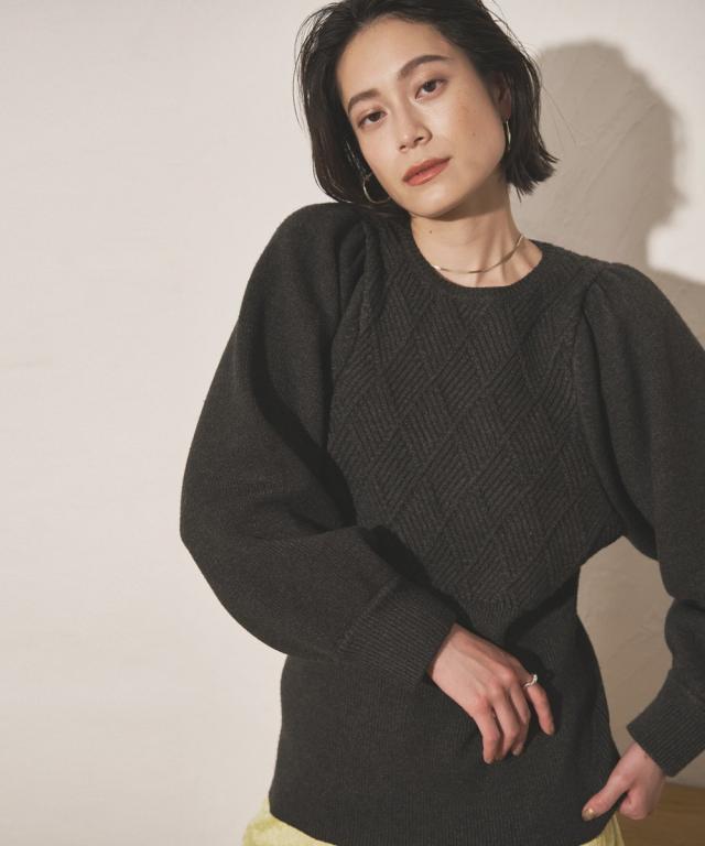 存在感のあるバスケット柄とボリュームスリーブが主役級のニットプルオーバー
