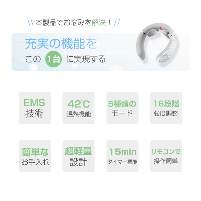 ネックマッサージャー リラクゼーション器 首掛け EMS 低周波 42℃ 温熱 W効果 5つのモード 16段階強さ 肩こり 首コリ リラックス 【PL保険加入済み製品・安心】