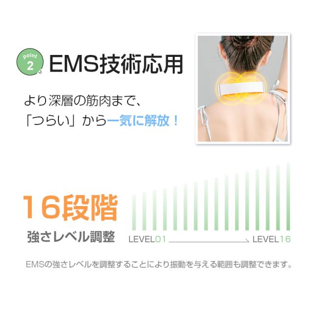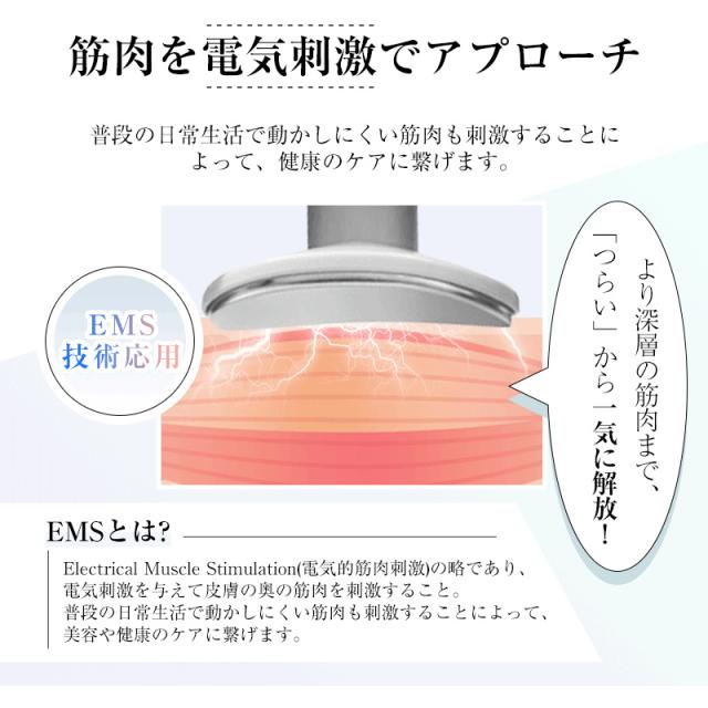 EMS電気刺激が普段あまり動かさない筋肉の奥深くまで刺激し首や肩の緊張を和らげます。