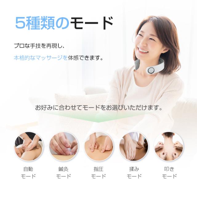用途に合わせて選べる5つのモード(自動モード/鍼灸モード/指圧モード/揉みモード/叩きモード)を搭載しており、本気でコリに悩む方へ 。