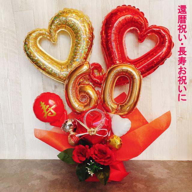 還暦祝い バルーンギフト 還暦 誕生日 バルーン バルーンアレンジ おしゃれ 豪華 電報 赤 60歳 長寿 結婚祝い 卓上 お祝い 敬老の日 数字 プレゼント 男性 女性 バルーンフラワー