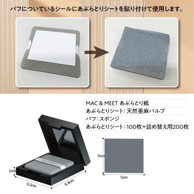あぶらとり紙 鏡 パフ コンパクトミラー フィルムタイプ 300枚 パフ付き 収納ケース 化粧直し メイク直し プレゼント コスメ商品 oil-paper