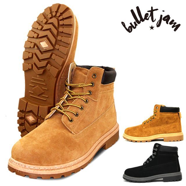 BULLETJAM[バレットジャム]本革スエード6インチワークブーツ「BJ-7126」 (ブロックパターンソール ブラック キャメル)