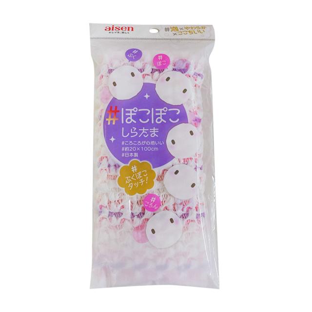 ボディタオル ぽこぽこしらたまタオル 100×20cm ピンク 日本製 BT435 [ナイロンタオル 浴室タオル 洗身タオル 泡立ち洗い心地 アイセン]