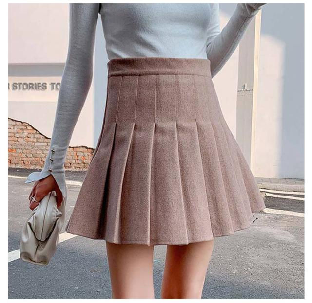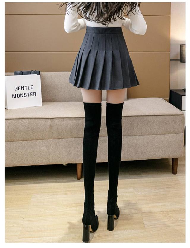 2丈 プリーツスカート 厚手 ミニスカート レディース 秋冬 ショート丈 長め丈 ハイウエスト インナーパンツ付き 脚長効果 ボトムス 着痩せ