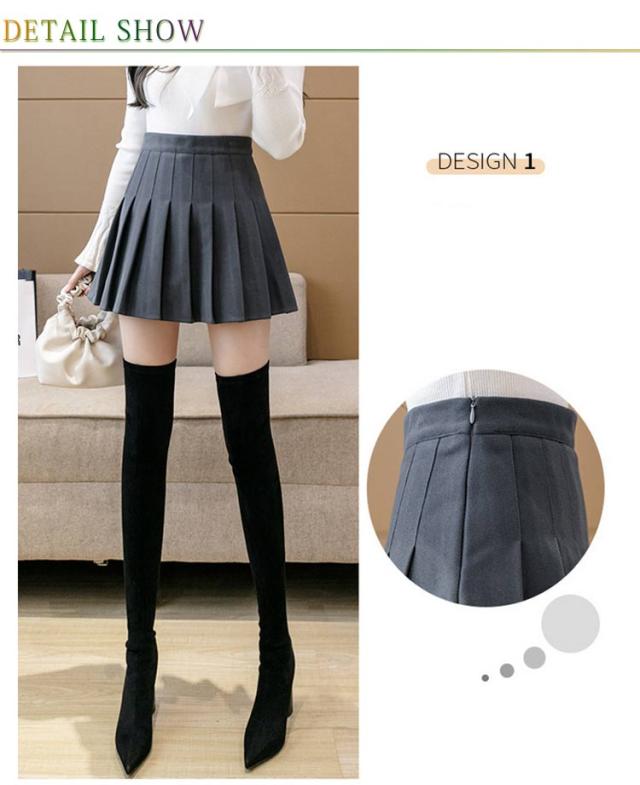 | 秋冬シーズン向けの厚手生地を使用、レディースプリーツスカート。 ミニ丈Aラインのシルエットは女性ならではの甘い色気を漂わせて、爽やかな学院風プリーツデザインも知的でエレガントな雰囲気を醸し出す◎ パンチラ防止のインナーパンツが施され、ファッションを楽しみながら安心感もたっぷり! ハイウエストの仕様なので、気になるお腹部分を押さえて着痩せ効果♪ そして下半身のラインを伸ばして脚長効果も期待できる。 | |