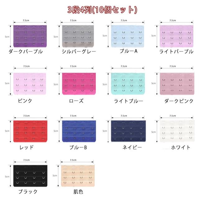 3列 4列 ブラジャー アジャスター 10個セット 延長用ブラホック レディース 下着 インナー 調節ホック サイズ変更 アンダーバスト 延長 妊婦 カラバリ豊富
