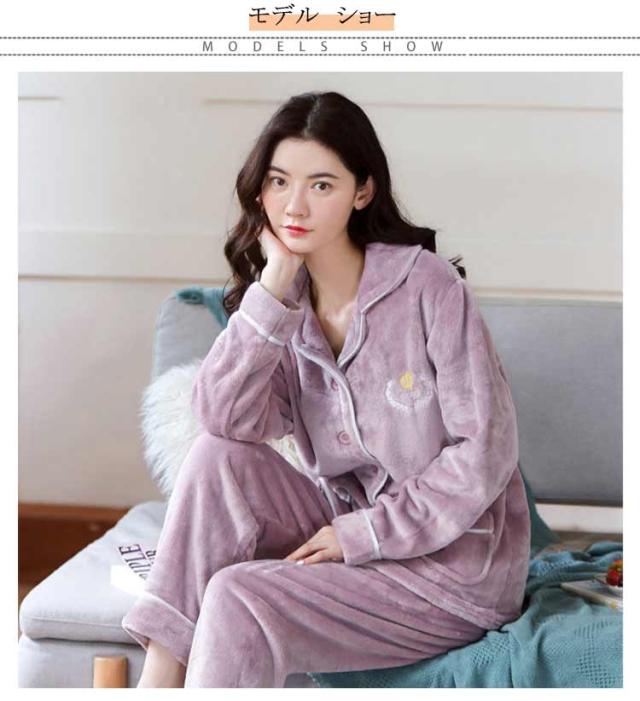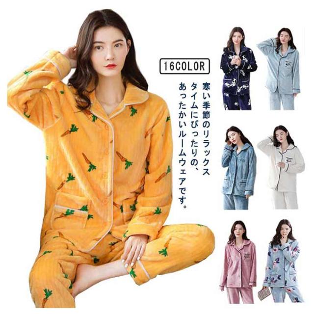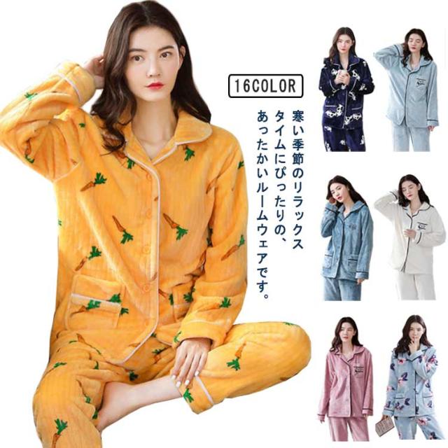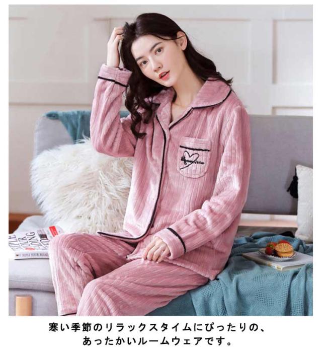 冬用 パジャマ ルームウェア レディース 上下セット 長袖 ロングパンツ 暖かい あったか ボア 裏起毛 もこもこ ふんわり モコモコ 前開き 秋冬 セットアップ おしゃれ 部屋着 かわいい 大人 女子 キッズ 着る毛布