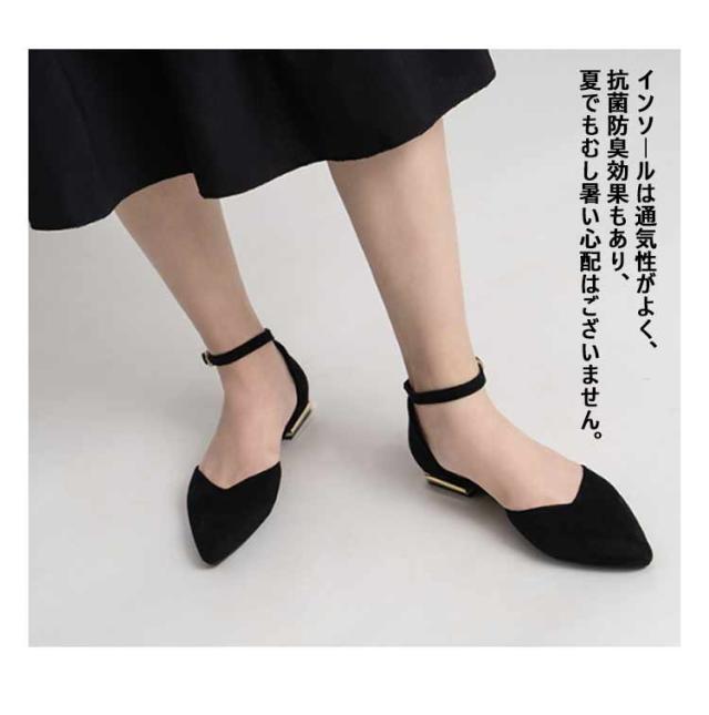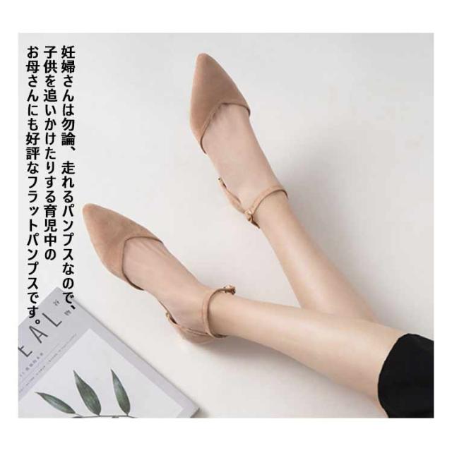 vカット パンプス 痛くない レディース ポインテッドトゥ ストラップパンプス フラットシューズ ローヒール 美脚パンプス スエード調 疲れない アンクルストラップ 走れる パンプス 結婚式 22.0-26.5cm