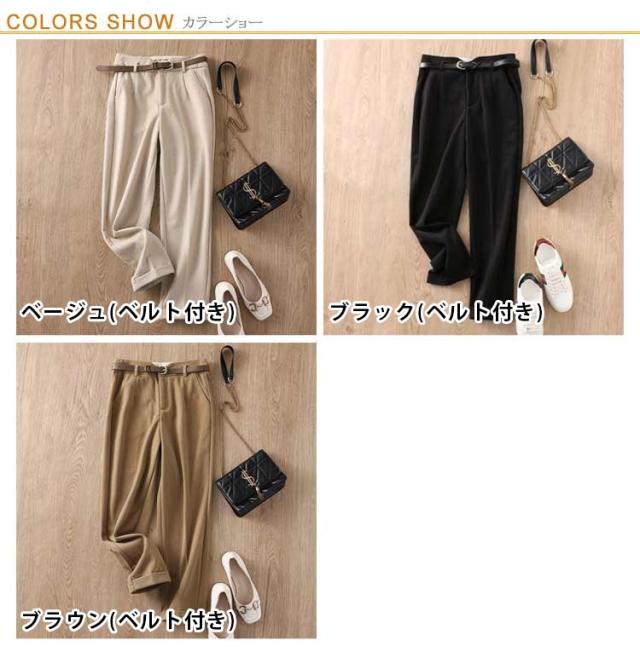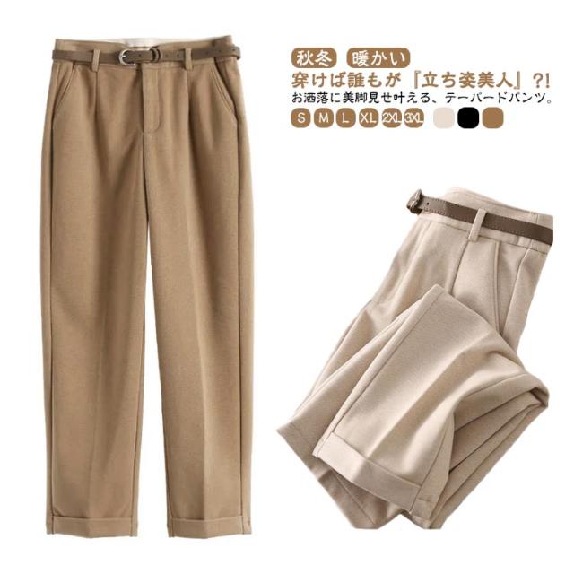 パンツ レディース テーパードパンツ ボトムス ズボン テーパード 大きいサイズ ゆったり 裏起毛 薄いラシャ 秋 冬 暖かい ベルト付き 低身長 高身長 オフィス カジュアル 上品 きれいめ ストレート 美脚 通勤 通学 シンプル 着やせ