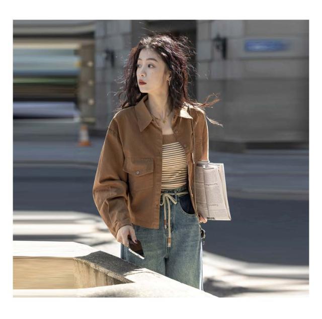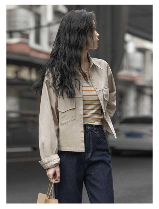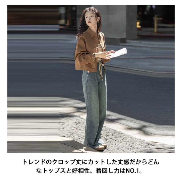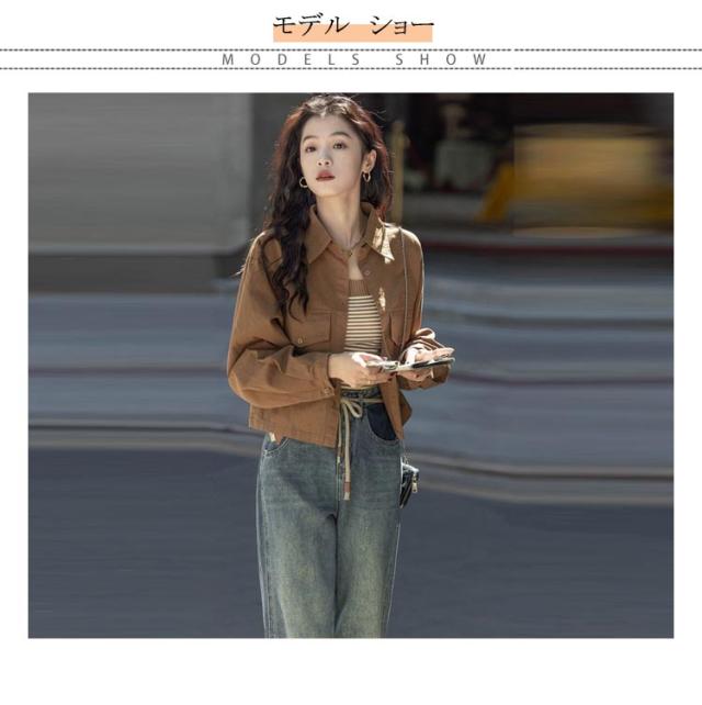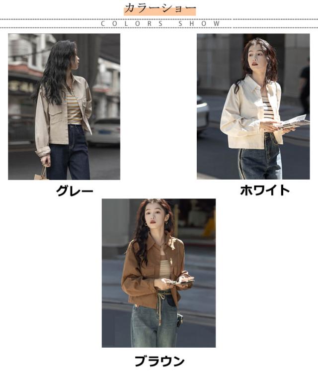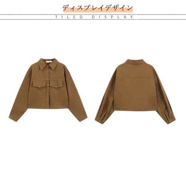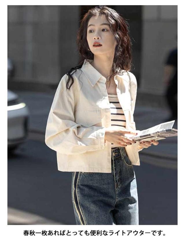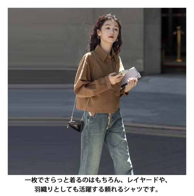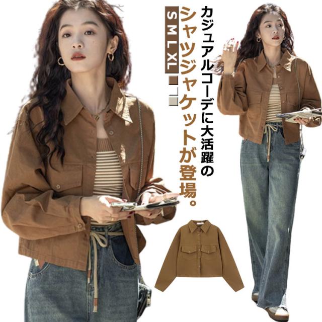 シャツジャケット レディース 長袖 ショート丈 トップス シャツ ジャケット 羽織り ライトアウター ビンテージ風 無地 シンプル きれいめ カジュアル おしゃれ 秋 春秋