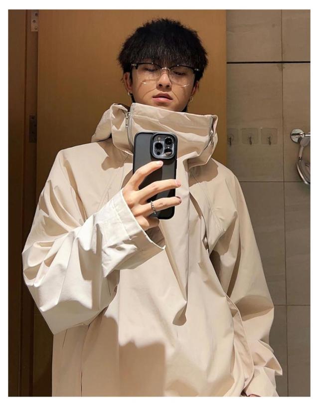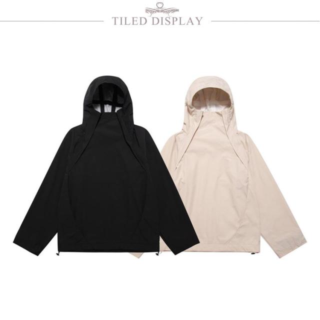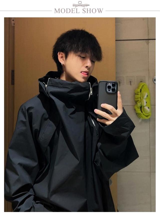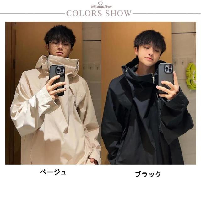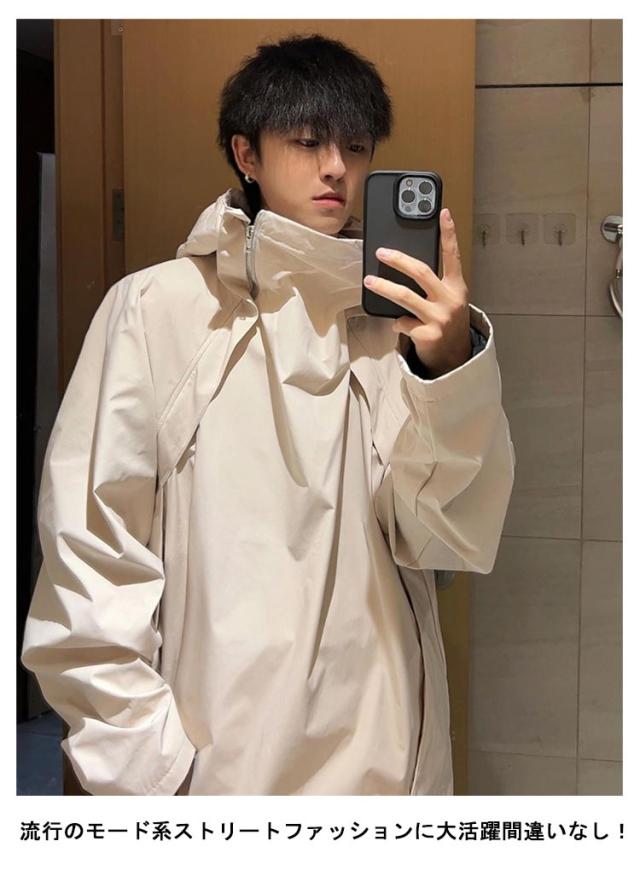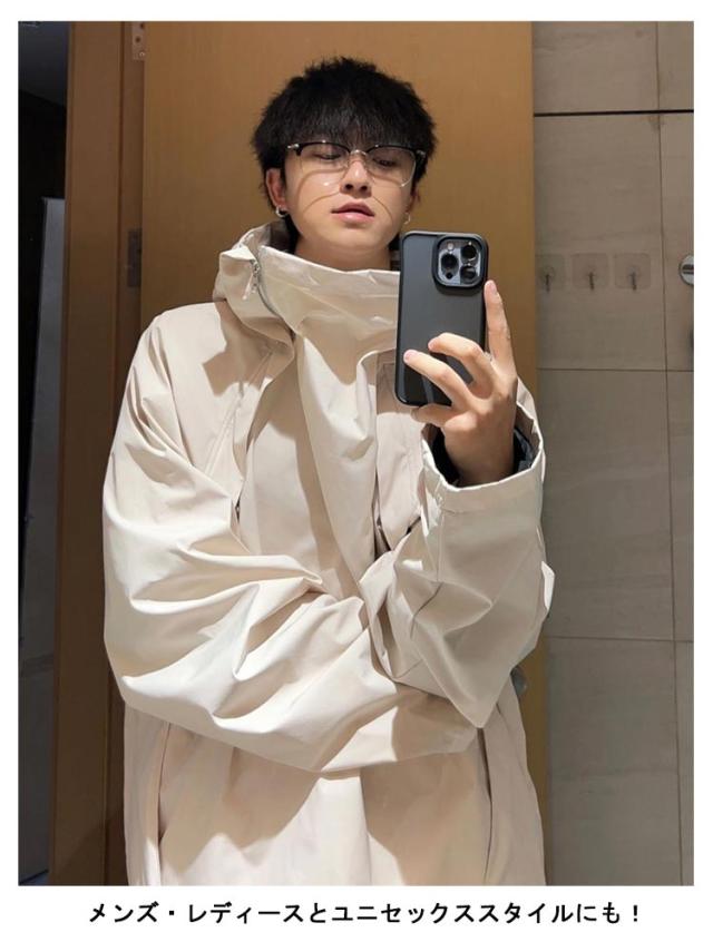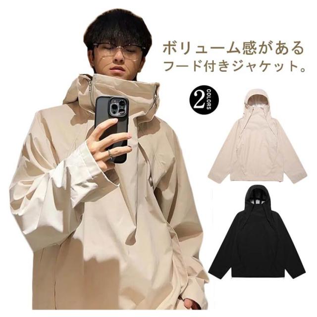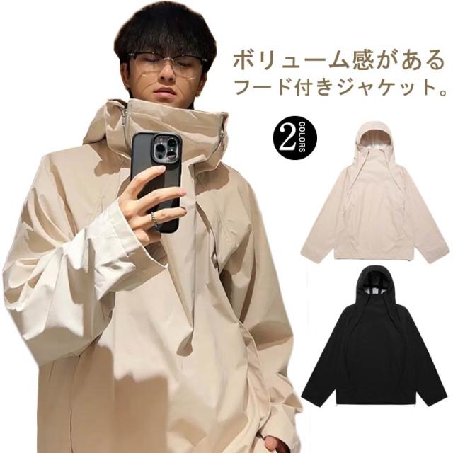 ボリュームネック ジャケット メンズ レディース 秋 秋服 ハイネック アウター 長袖 マウンテンパーカー 春 秋 ゆったり 大きいサイズ フード付き コート オーバーサイズ ビッグシルエット 男女兼用 ブルゾン ?国ファッション モード系 ストリート カジュアル おしゃれ