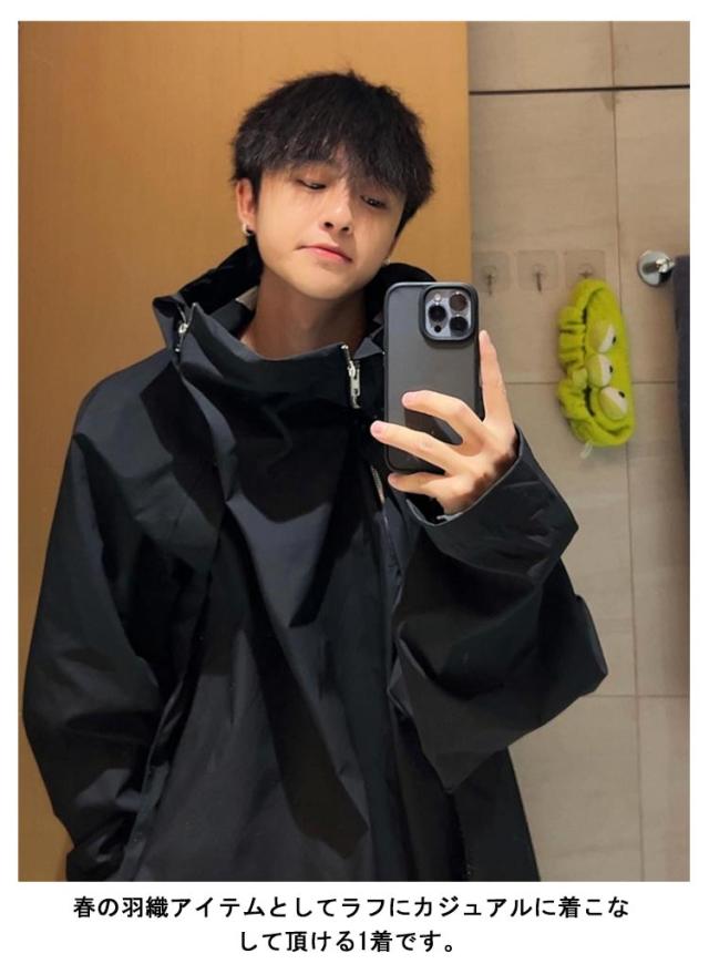 | ボリューム感があるフード付きジャケット。 春の羽織アイテムとしてラフにカジュアルに着こなして頂ける1着です。 流行のモード系ストリートファッションに大活躍間違いなし! メンズ・レディースとユニセックススタイルにも! | |