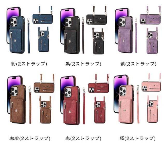 ストラップ ショルダー付き iPhone15 ケース 背面収納 ケース ミニ財布 小銭入れ スマホケース 財布型 スマホ ショルダー 肩掛け 斜め掛け 背面 カード収納 カードポケット 送料無料