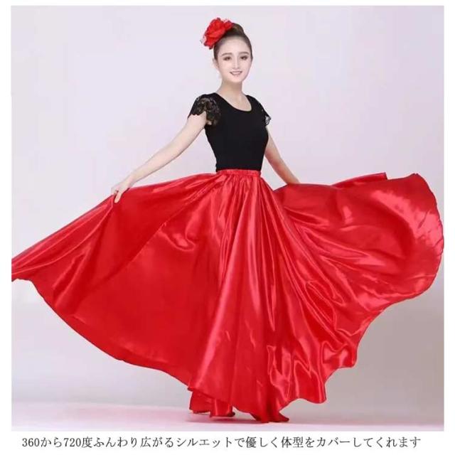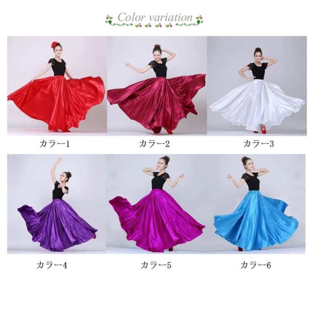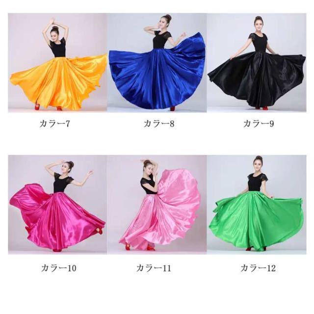 光沢感 ダンススカート フレアスカート ロングスカート 広がる スカート ロング丈 360度 540度 720度 社交ダンス ベリーダンス ダンス衣装 ラテンダンス パソドブレ フラメンコ 80cm 85cm 90cm