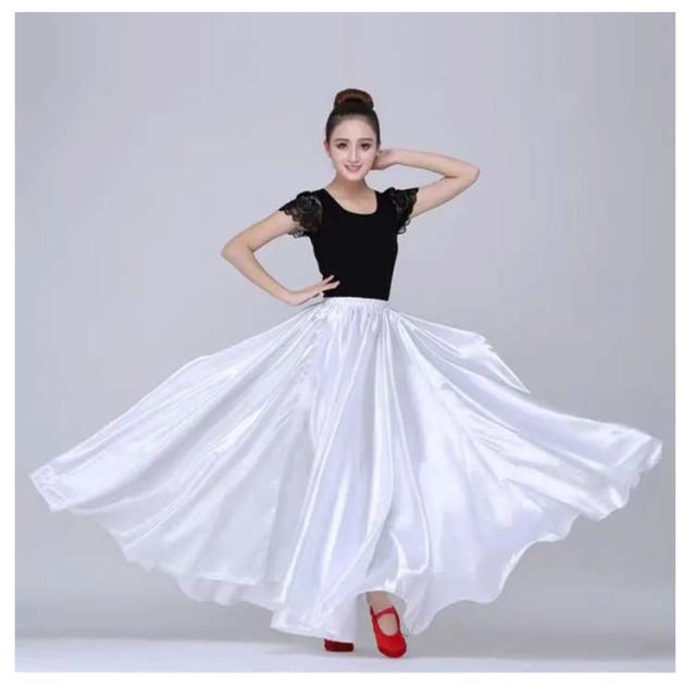 | 光沢感のあるロング丈ダンススカート。 軽やかな雰囲気で足さばきラクラク、ダンス用やステージ衣装に最適。 ウエストは総ゴム仕様で楽に履き脱げます。 360から720度ふんわり広がるシルエットで優しく体型をカバーしてくれます 裾幅とスカート丈が豊富なのでお好きのように選んでいただけます。 | |