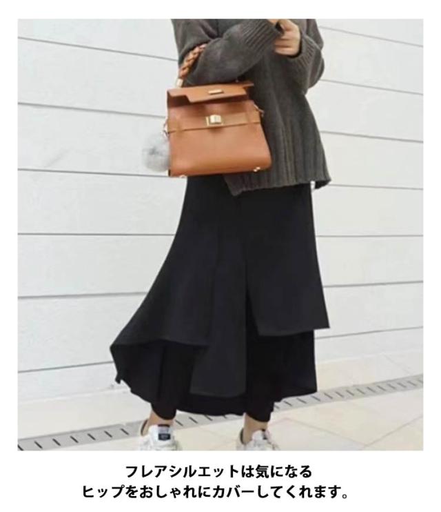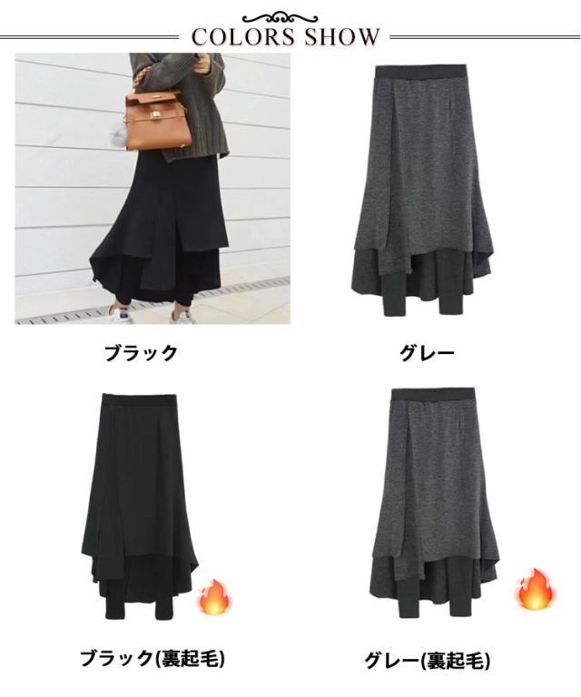 レギンス付きスカート 裏起毛 スカートレギンス タイトスカート レディース レギンス付き スパッツ ロング丈 フレアスカート ウエストゴム 体型カバー 重ね着風 カジュアル 冷え対策 防寒 カジュアル おしゃれ きれいめ 秋 冬