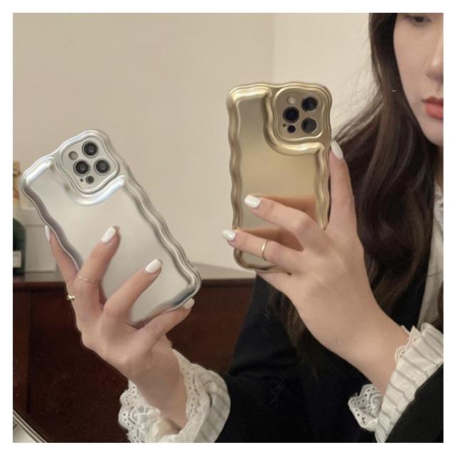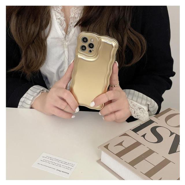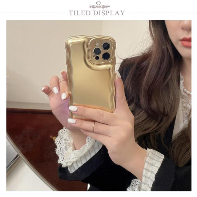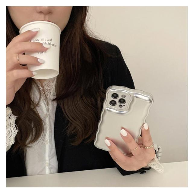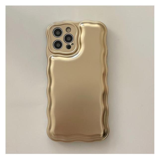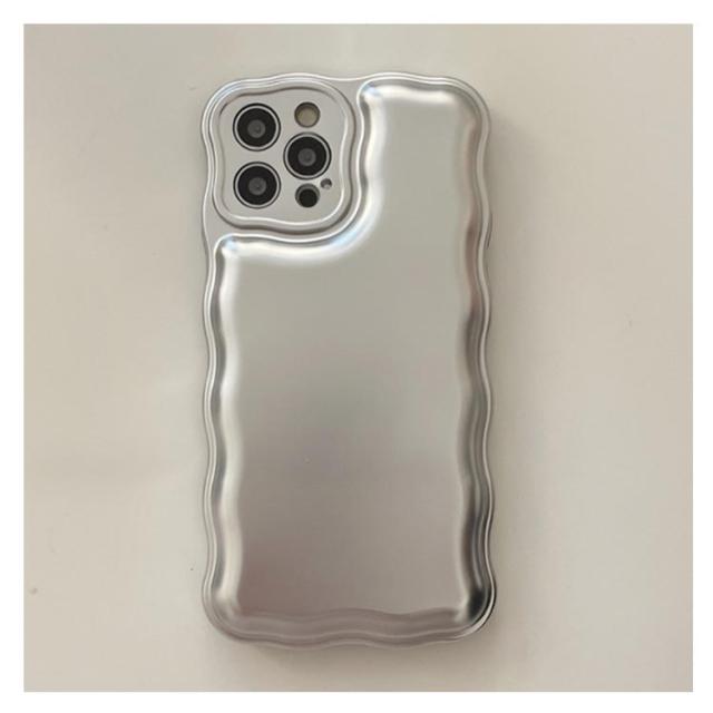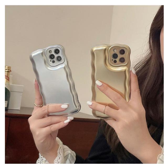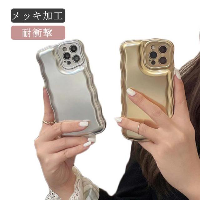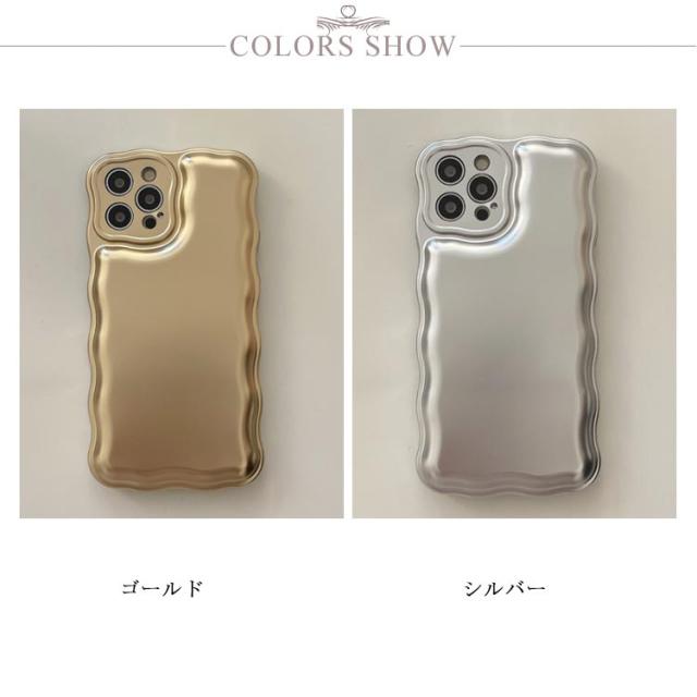 iPhone 15 14 13 ケース ウェーブ うねうね 韓国 かわいい シンプル 大人かわいい おしゃれ メタル メッキ加工 シルバー ゴールド ソフトケース 耐衝撃 ストラップ ストラップホール 立体 スマホケース スマホカバー 送料無料
