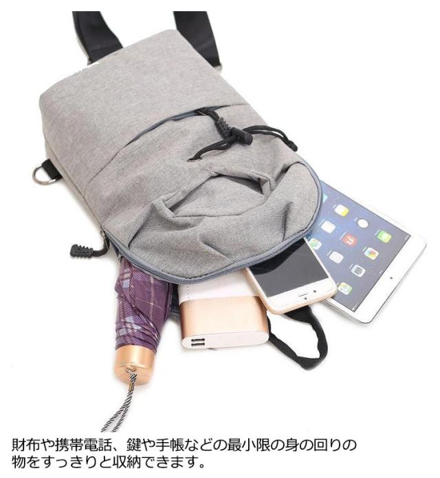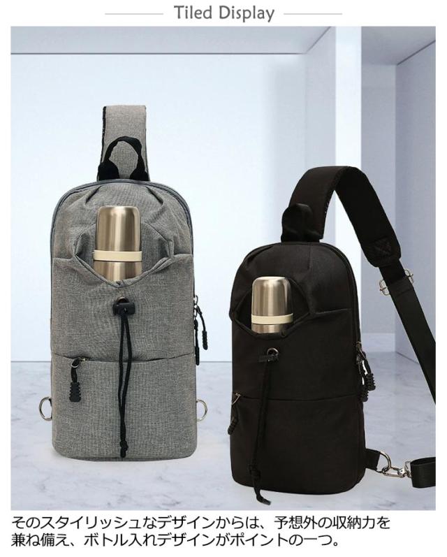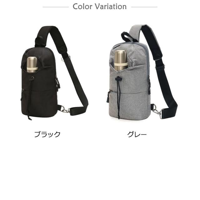 | スタイリッシュでおしゃれなフォルムのボディバッグ! 財布や携帯電話、鍵や手帳などの最小限の身の回りの物をすっきりと収納できます。 そのスタイリッシュなデザインからは、予想外の収納力を兼ね備え、ボトル入れデザインがポイントの一つ。 撥水加工を施された防水生地を採用!突然の雨やレジャー、アウトドアでも安心してお使いいただけます。 自転車に乗るときや旅先でのご使用、近所に出掛けるときのワンマイルバッグとしてもおすすめ! | |