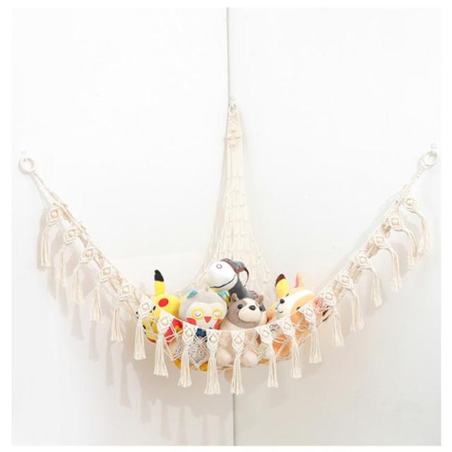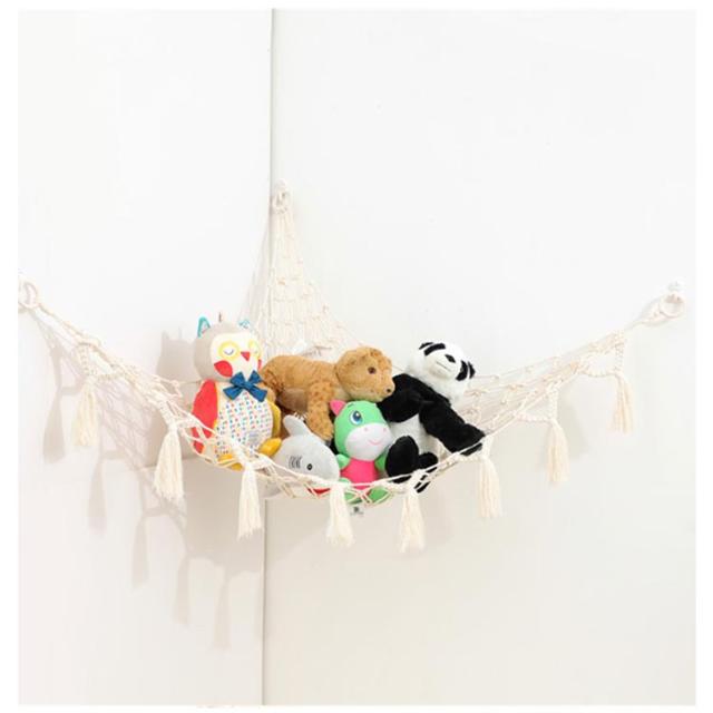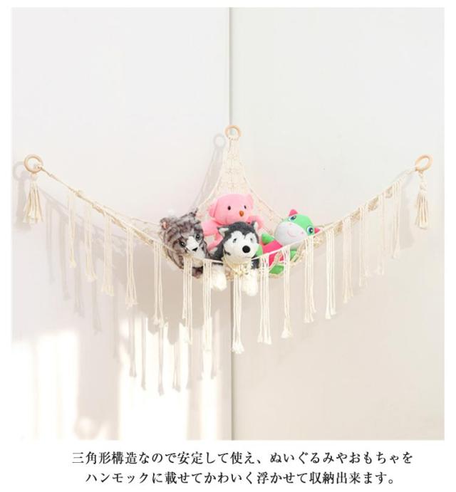 | 超かわいいボヘミアン風!ぬいぐるみやおもちゃを収納できるハンモック 三角形構造なので安定して使え、ぬいぐるみやおもちゃをハンモックに載せてかわいく浮かせて収納出来ます。 ざっくりとした網目とフリンジがおしゃれで、ちょっとした子供部屋のアクセントになります。 これなら床におもちゃが散らばらなく、お掃除も楽にできます。 使わないときは、コンパクトにまるめて収納することができるから、便利です。 | |