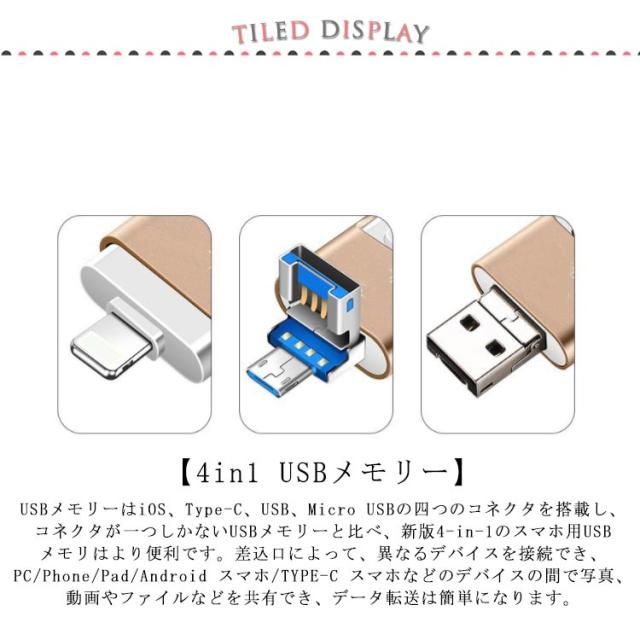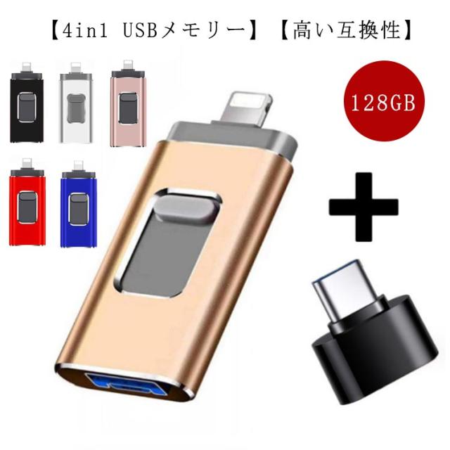 スマホ用 USBメモリー USBメモリ 128GB フラッシュドライブ USB3.0対応 高速 128gb フラッシュメモリ usbメモリ 大容量 超小型 4in1用 スマホ パソコン iPhone/Android/PC対応 iPad iOS micro 用USBメモリー iphone用フラッシュメモリ 容量不足解消 プレゼント