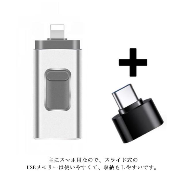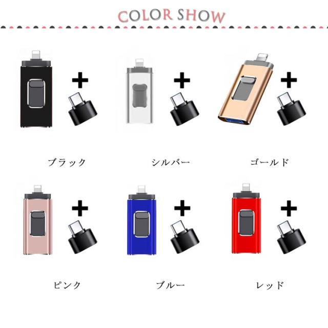 | 【4in1 USBメモリー】USBメモリーはiOS、Type-C、USB、Micro USBの四つのコネクタを搭載し、コネクタが一つしかないUSBメモリーと比べ、新版4-in-1のスマホ用USBメモリはより便利です。差込口によって、異なるデバイスを接続でき、PC/Phone/Pad/Android スマホ/TYPE-C スマホなどのデバイスの間で写真、動画やファイルなどを共有でき、データ転送は簡単になります。 【高い互換性】スマートフォン、タブレット、パソコンなど様々なデバイスに対応。USBメモリをスマホに挿入するだけでデータをバックアップできて、専用アプリから解放します。 ※ご注意:IOSシステムを使うとき、専用アプリをダウンロードしてください。USBフラッシュメモリと接続すると、データ保存・データ転送・音楽再生・写真バックアップ・動画/画像/資料などの編集はできます。 【スライド式・利便性に優れる】主にスマホ用なので、スライド式のUSBメモリーは使いやすくて、収納もしやすいです。真ん中にスライドボタンがあり、上下にスライドしてコネクタを変更できて、様々なデバイスに対応しやすいです。 【USB3.0高速でデータ転送】USB2.0により、USB3.0のUSBメモリーはより高速で、データが多くても、より短い時間で転送できます。 | |