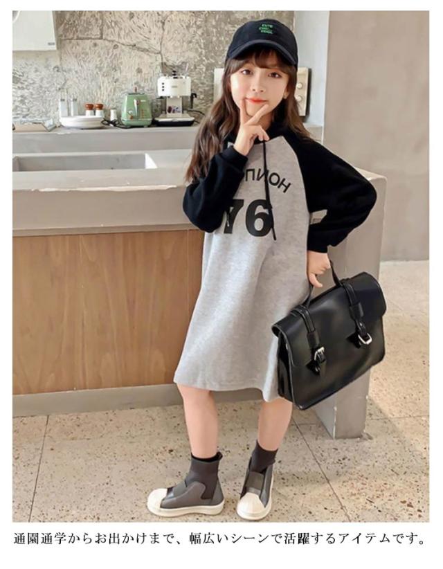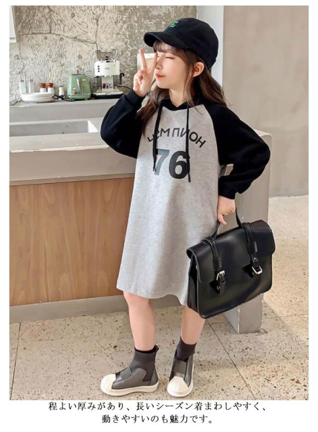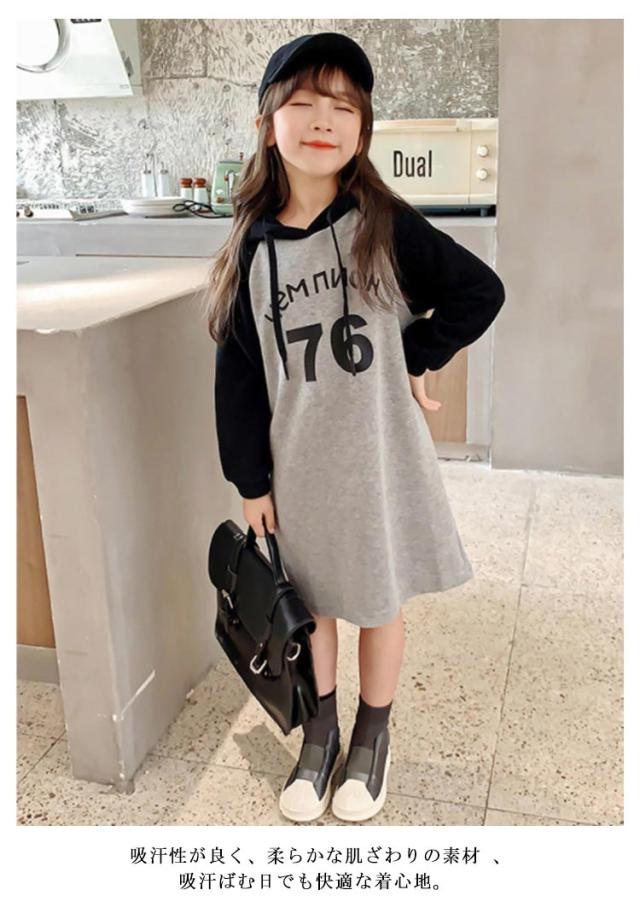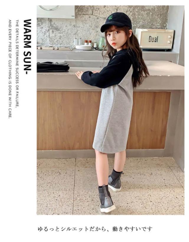 子供服 キッズ 女の子 女児 子ども ジュニア 長袖Tシャツ シンプル 無地 韓国子供服 ワンピース ミドル丈 長袖 防寒 スウェットワンピー 運動着 ジュニア服 体型カバー 120 130 140 150 160 170 トレーナー 通園 通学 フレアワンピース 春秋 冬 送料無料