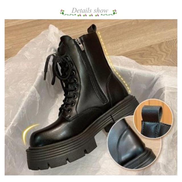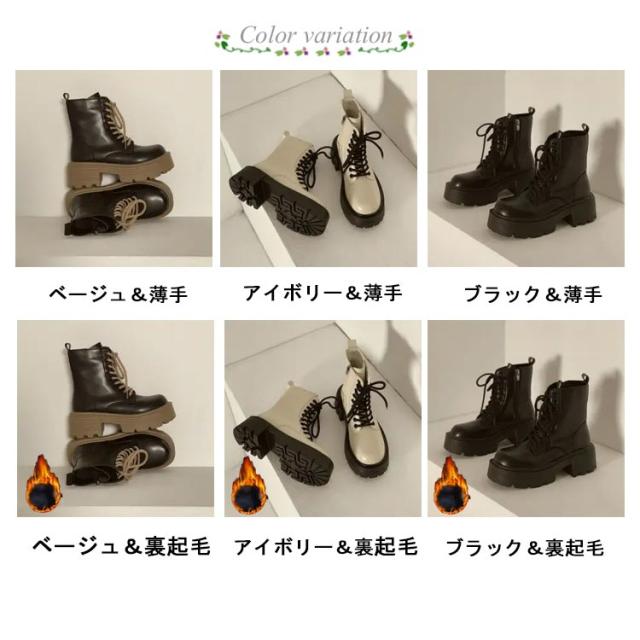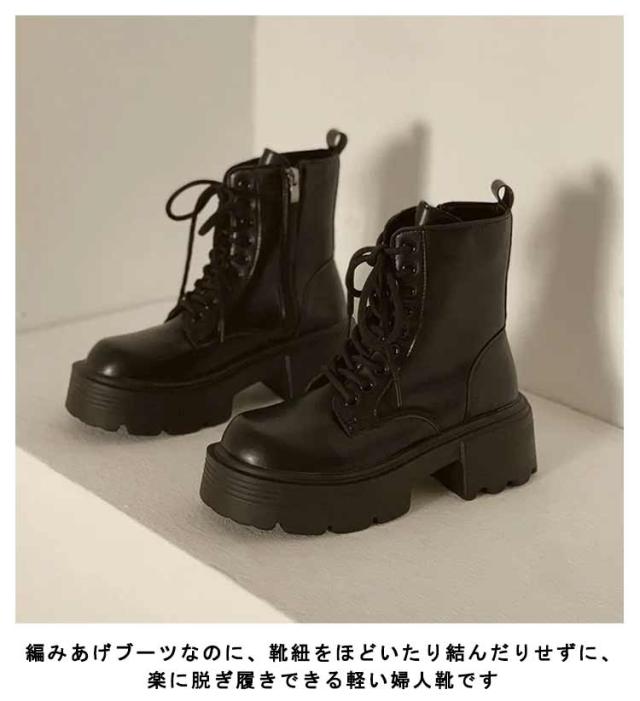| シンプルでカジュアルながらエレガントなデザインミリタリーブーツ ソフトで上質のレザーを使用していますのでとっても柔らかく足に優しくフィットしてとても歩きやすいです アウトソールにはラバーを採用しているので滑りにくく、安定した歩行をサポートしてくれそう 編みあげブーツなのに、靴紐をほどいたり結んだりせずに、楽に脱ぎ履きできる軽い婦人靴です 柔らかいインソールと屈曲性の高いゴムの靴底で、たくさん歩いても疲れないとの評判! 安定感のある厚底5.5cmヒールなので、長時間履いても疲れません パンツだけでなく、スカートにも合う履き回しやすいブーツです | |