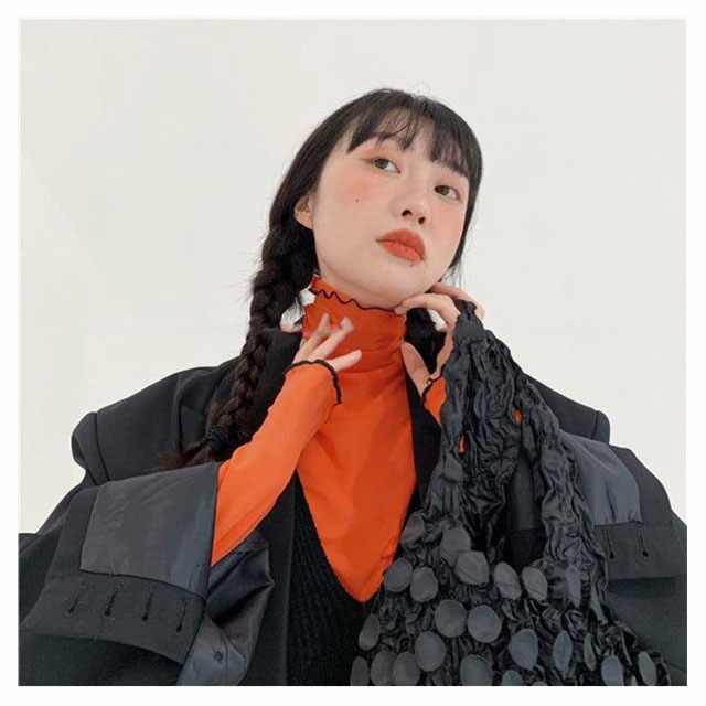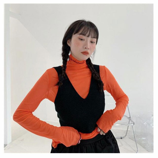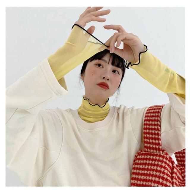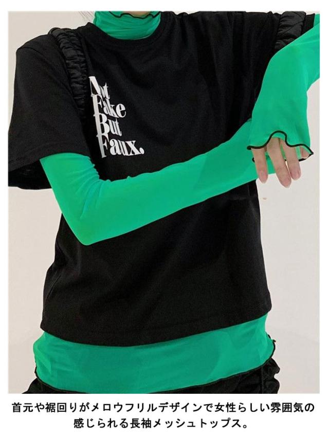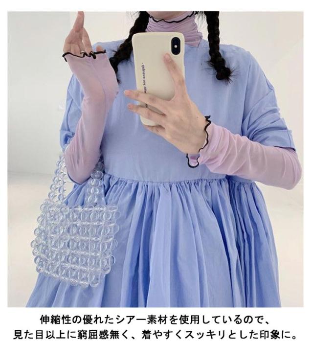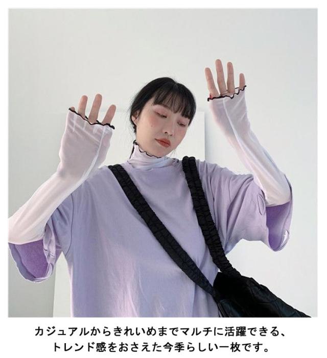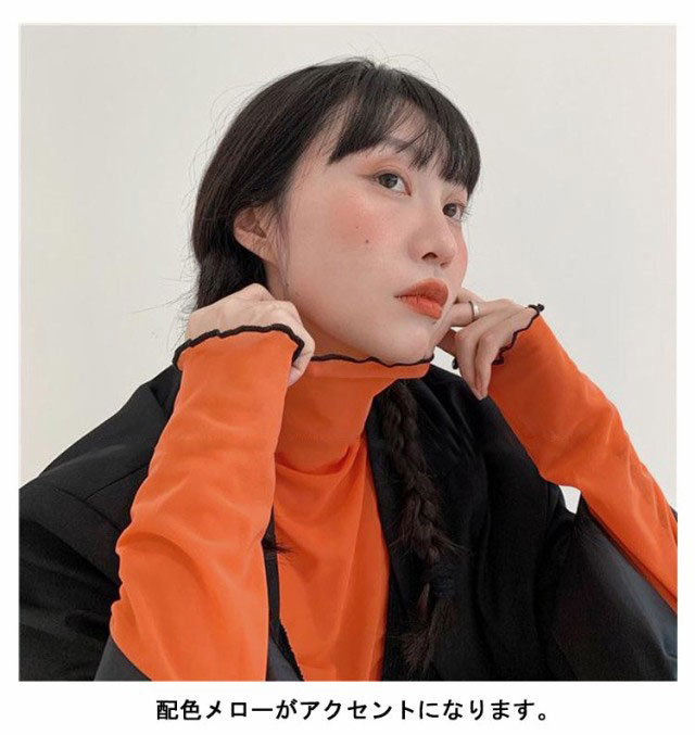 シアートップス タートルネック パイピンク 配色 レディース メッシュトップス チュール カットソー 長袖 メロウ ハイネック インナー トップス レイヤード 重ね着 コーデ シースルー シアー 透け チュールトップス 伸縮性 韓国 大人 可愛い カラフル 【送無】