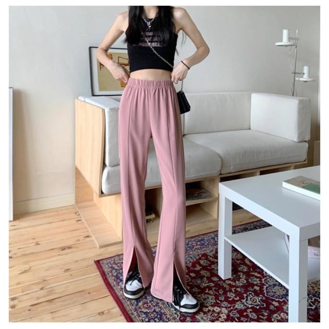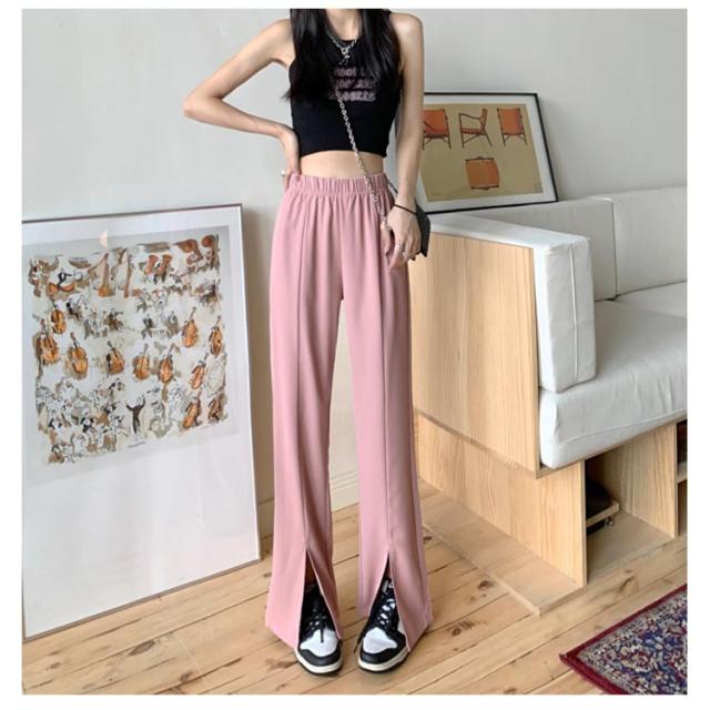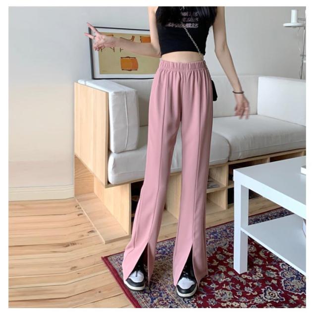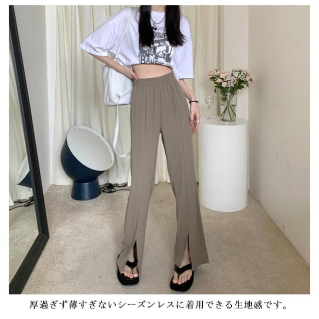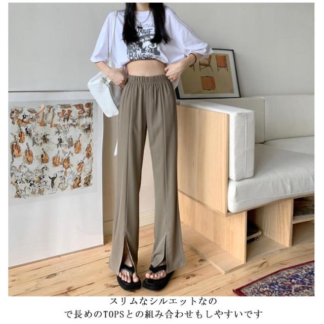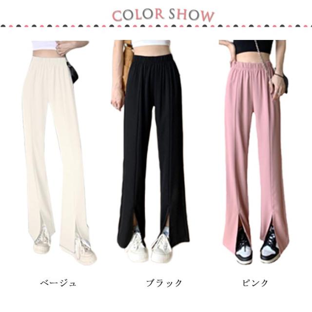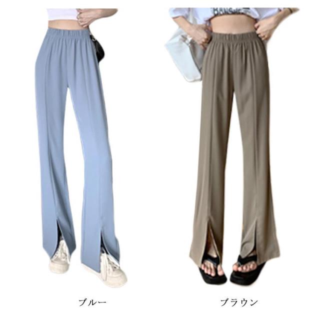 パンツ レディース センタースリット センターシーム スリット フレア フレアパンツ カラーパンツ スラックス ウエストゴム ハイウエスト ボトム オフィス オフィスカジュアル 通勤 カラーパンツ 上品 きれいめ 春 夏 秋