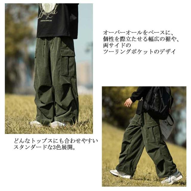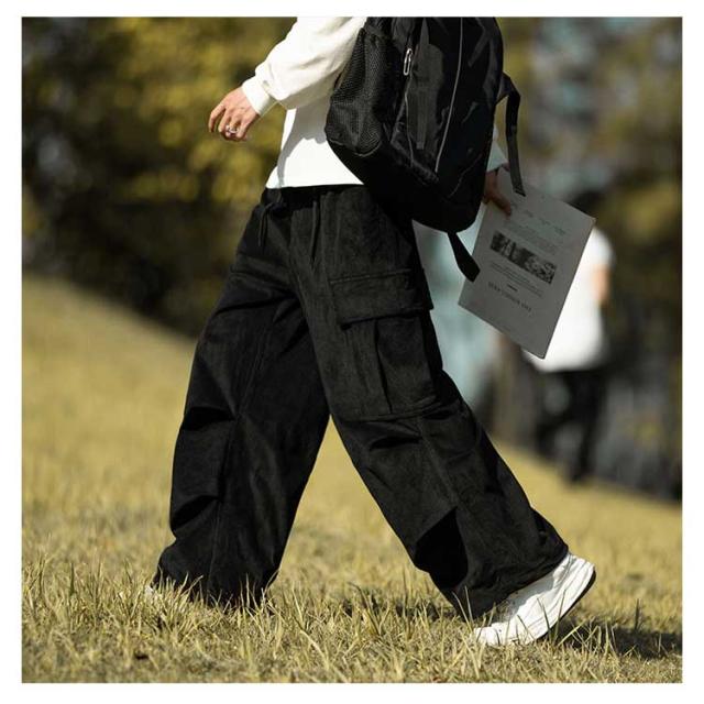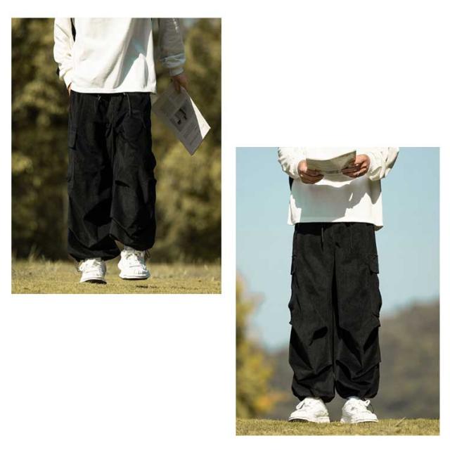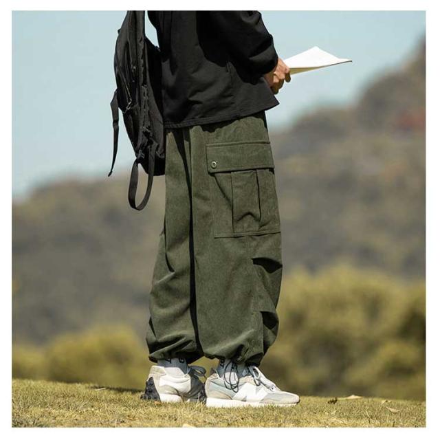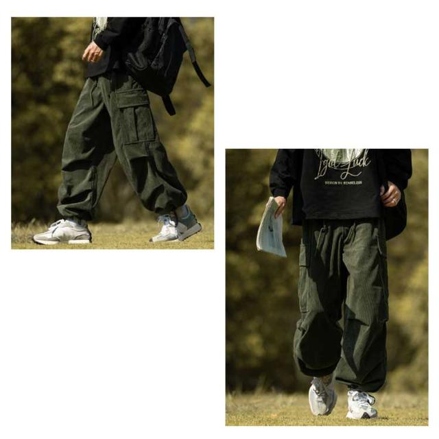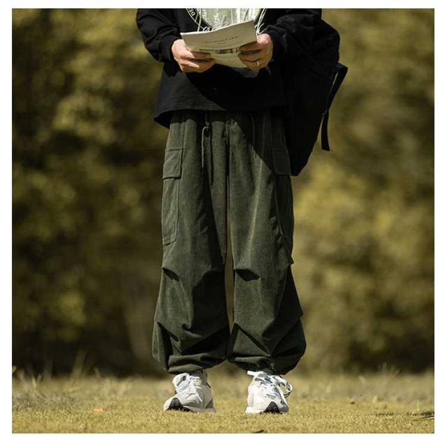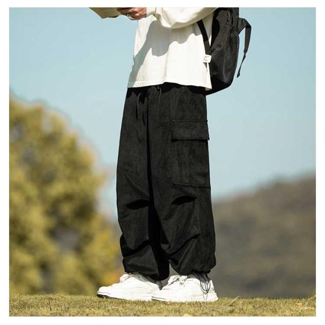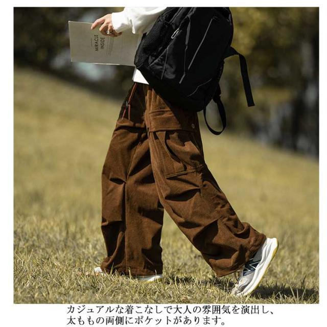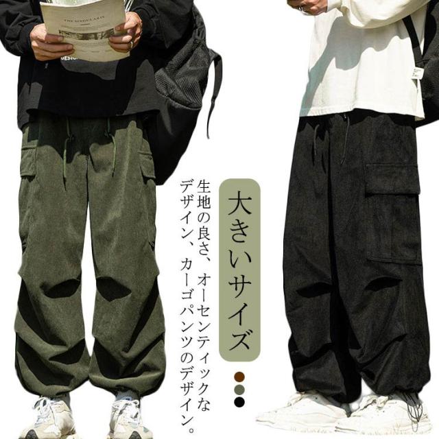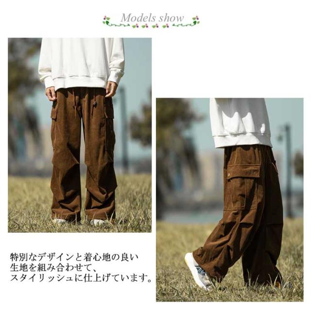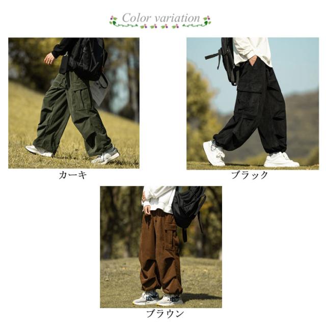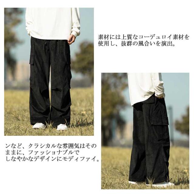 コーデュロイ カーゴパンツ メンズ 長ズボン ロングパンツ オーバーサイズ ワイドパンツ リラックスパンツ ガウチョパンツ スウェット スポーツ ゆったり ウエストゴム ボトムス 男性 無地 カジュアル 春服 秋服 冬服