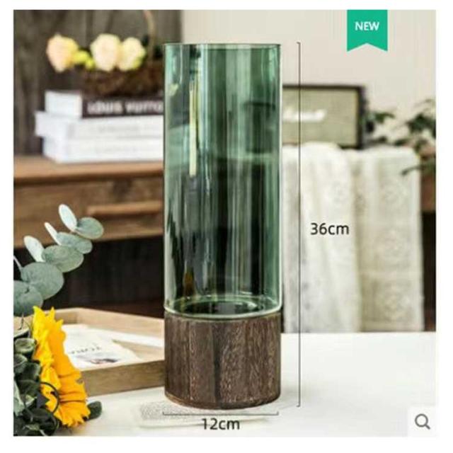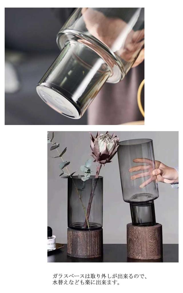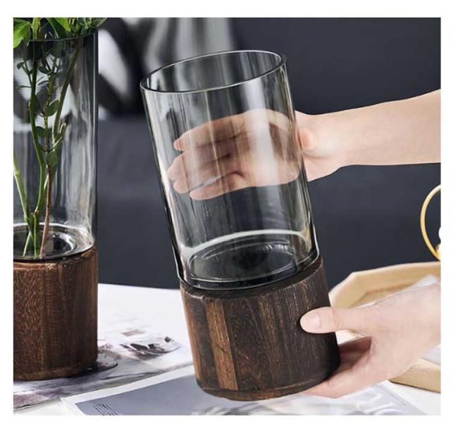 花瓶 おしゃれ フラワーベース 大きい ガラス 木製 円柱 花びん 北欧 丸 ガラスボトル 生花 ドライフラワー 卓上 シンプル ガラス花瓶 インテリア 花器 プレゼント