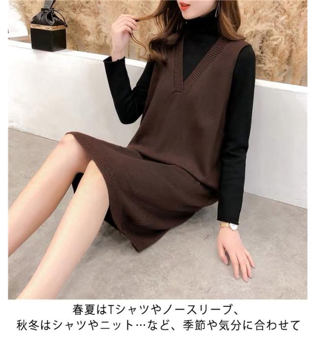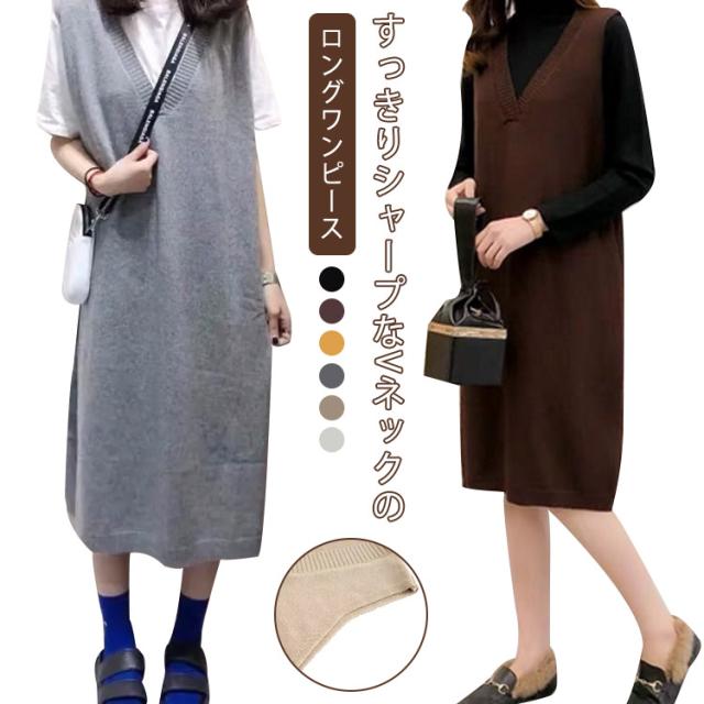 ジャンパースカート ノースリーブ Vネック ワンピース レディース ロング ワンピース ロングワンピース ロング丈 秋冬 春 無地 ワンピ ロングワンピ ジャンスカ 大人可愛い マタニティ 体型カバー ゆったり 楽ちん 着心地 韓国ファッショ 可愛い