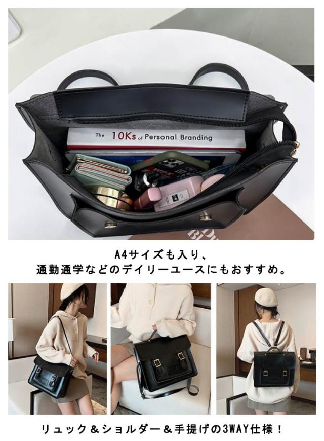 | どんなスタイルの方にも持つことができるリュックサック リュック&ショルダー&手提げの3WAY仕様! A4サイズも入り、通勤通学などのデイリーユースにもおすすめ。 質の高いPUレザーを採用する。お手入れ簡単にもうれしい♪ 男性にも女性にも使いやすいシンプルなデザイン。 普段使いはもちろん、通勤・通学バッグや、旅行の時にも活躍します。 | |
