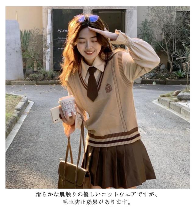 学生服 3点セット ニットベスト おしゃれ 高校生 女の子 秋冬 シャツ スカート 制服 上下セット 可愛い 白シャツ JK制服 女子高校生 プリーツスカート ライン入り 春 スクール制服 女子高校生 長袖