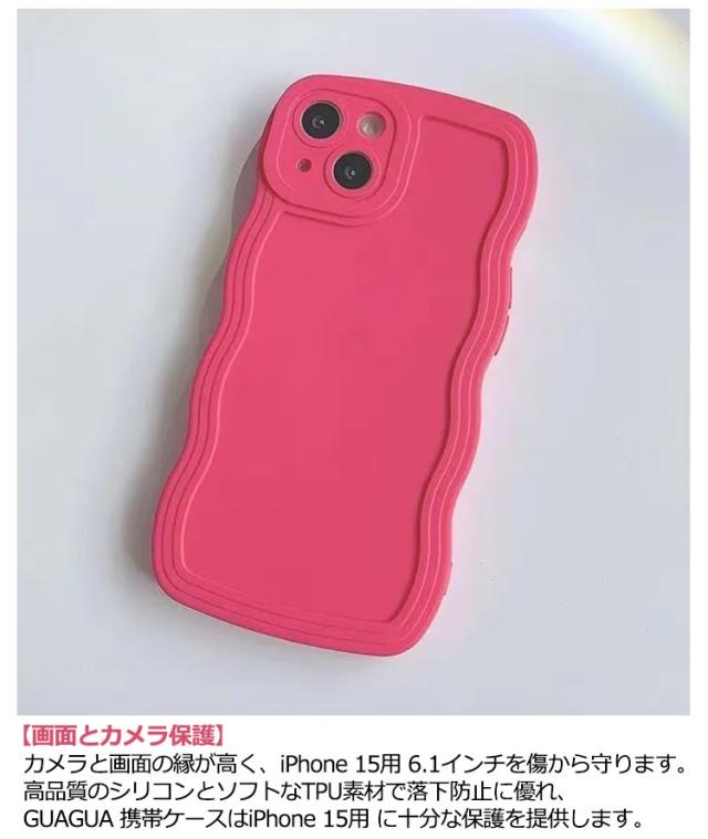 | キュートなカラーとウェーブフレームが魅力的!軽量設計で柔らかなイメージを抱かせる波を連想するデザインケース。 【ウェーブ湾曲縁&TPU肌触り】湾曲したエッジにより握りやすくなっています。アイフォン iPhone 15用 ケースは滑らかな液体シリコンゴムと柔らかいTPU製で、耐傷性、耐指紋性、耐衝撃性に優れ、取り外しも簡単,お手入れし易い。 【超軽量&スリム&ワイヤレス充電】柔軟性があり、取り外しが簡単で、スリムなため、特定の保護を提供しながら、携帯電話がかさばることはありません。薄くて軽量なケースは、ワイヤレス充電器との相性が良いです。 【画面とカメラ保護】カメラと画面の縁が高く、iPhone 15用 6.1インチを傷から守ります。高品質のシリコンとソフトなTPU素材で落下防止に優れ、GUAGUA 携帯ケースはiPhone 15用 に十分な保護を提供します。 【ギフトに最適】波模様のエッジデザインはお洒落で、ユニークです。記念日、母の日、誕生日、クリスマス、バレンタインデー、お正月、開校祝いやその他のお祭り、妻、母、娘、彼女やガールフレンドに最適です。 | |