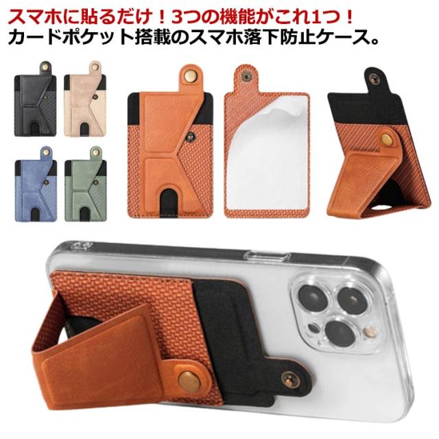 スマホ カードケース カードホルダー カードポケット スマホリング スマホスタンド カード入れ 落下防止 ハンドストラップ カード入れ 背面ポケット 送料無料 スマートフォン カード 貼り付け スタンド機能 スリム シンプル iPhone Xperia Galaxy Android