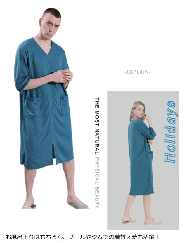 着るバスタオル バスタオル バスローブ レディース メンズ ルームウェア ラップタオル ワンピース ワッフル生地 前開き ジップアップ Vネック ゆったり 薄手 大人 湯冷め防止 プール スイミング 海水浴 温泉 大きいサイズ 春 夏 秋