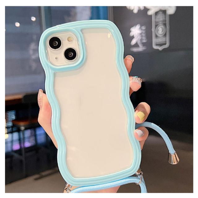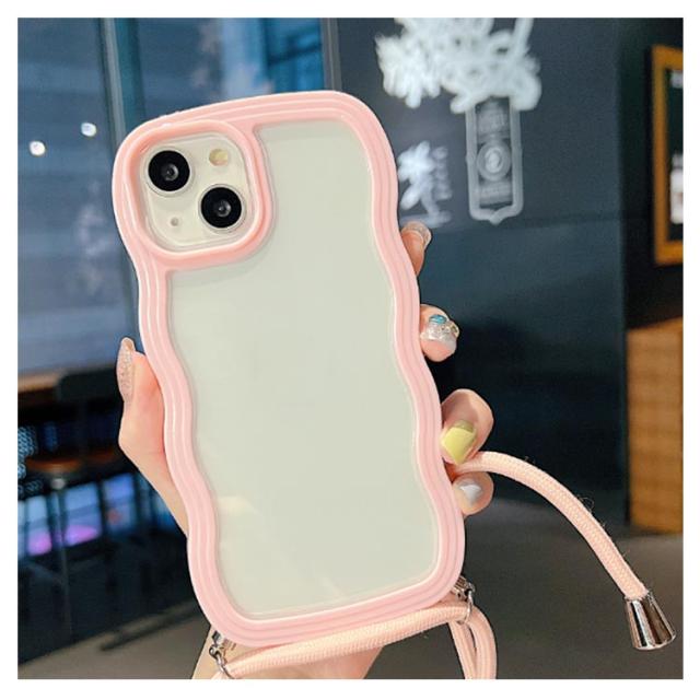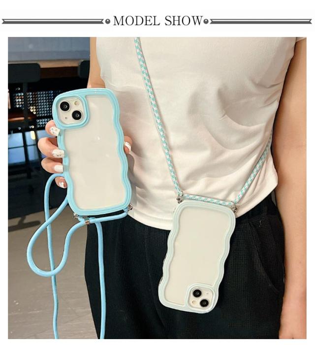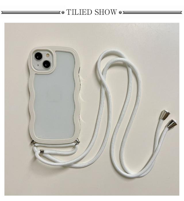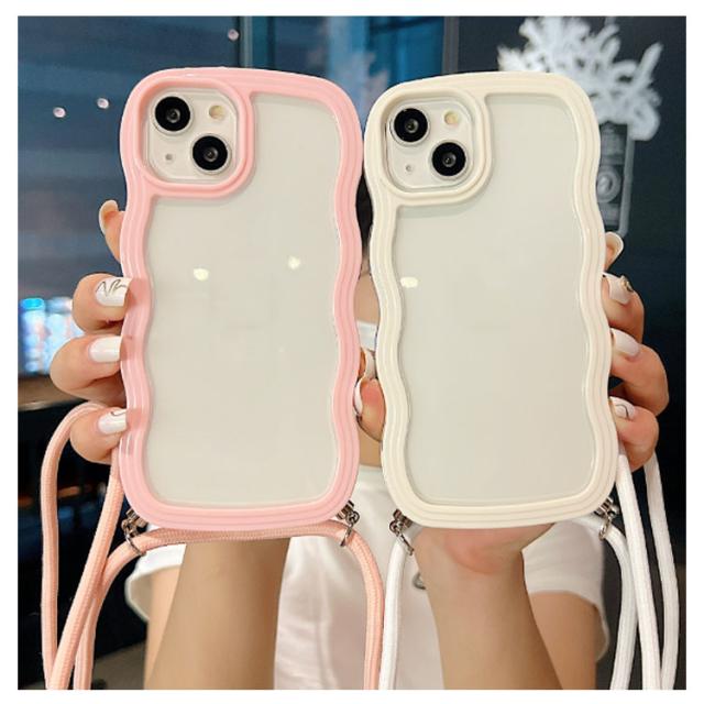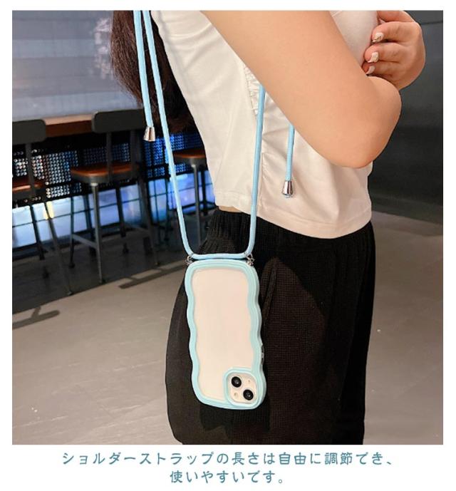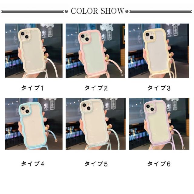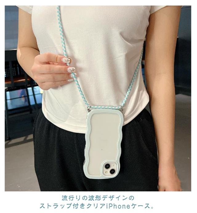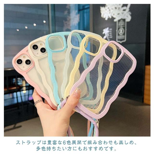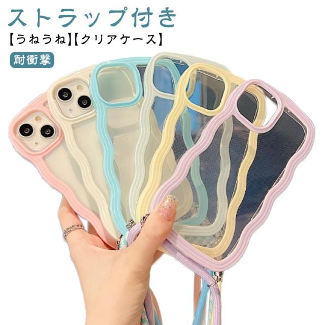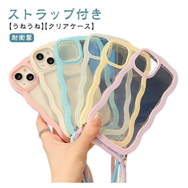 iPhoneケース iPhone15 クリアケース うねうね ショルダー iPhone14 ストラップ付き 耐衝撃 スマホケース iPhone ケース iPhone13 iPhone12 iPhone11 Pro Plus XR X XS MAX 多機種対応 首かけ 斜め掛け なみなみ 携帯 ケース レデイーズ おしゃれ 可愛い 送料無料