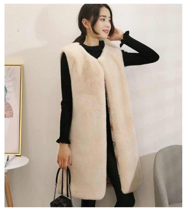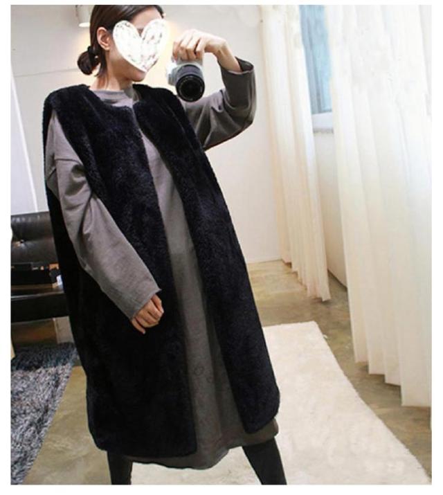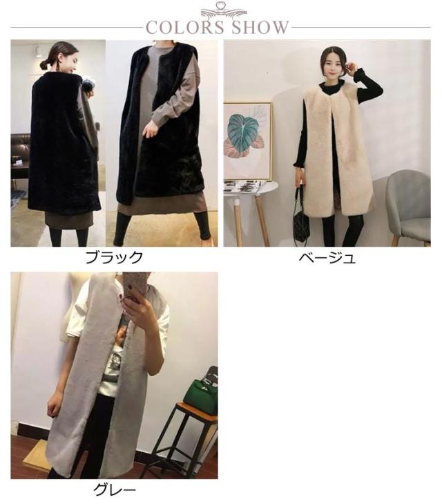エコ ファー ベスト レディース 春 秋冬 コーデ 前開き ロング丈 ひざ下 モフモフ もこもこ ふわふわ ボリューム ファー ジレ フェイクファー エコファー コード ノースリーブ 袖なし シンプル 大人 カジュアル レイヤード 黒 ブラック グレー ベージュ 送料無料