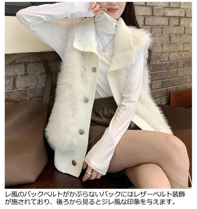 | トレンドのベストをカジュアルに落とし込んだ、オーバーサイズのファーベスト リブ付きできれいめカジュアル裾がリブ仕様になっていることで、ファーでもカジュアルな仕様になっています。 全体的にオーバーサイズ&アームホールがゆったりしているので、着心地が快適なうえすっきりシルエットのスタイルのアクセントになります。 レ風のバックベルトがかぶらないバックにはレザーベルト装飾が施されており、後ろから見るとジレ風な印象を与えます。 | |
