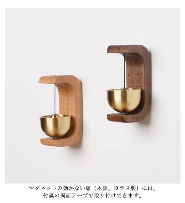 | 【ウォールナット木材】木地は重硬で衝撃に強く、強度と粘りがあり、狂いが少なく加工性や着色性も良いという特性を持っています。豊富な経験を持つ職人が一つ一つ丁寧に作り上げられた逸品です。*古材にアンティーク加工を施しているため、自然なひび割れ、木の節や色むらが一つ一つ違います。 【ドアが開くたび、美しい音でお知らせ】開き戸にも、引き戸にも対応。ドアが開くたびに、綺麗な音が鳴り、良い気を家の中に招いてくれます。注:ドアの開閉方法や力加減により、ドアベルがうまく反応されない場合がございます。 【マグネットで取り付け簡単】マグネットの効かない扉(木製、ガラス製)には、付属の両面テープで取り付けできます。 【設置場所】自宅の玄関ドア、キッチンドア、ヘアドア、冷蔵庫ドアはもちろん、喫茶店、雑貨店など店舗の出入り口ドアにも設置できます。ドアが動く時にベルが鳴り、音を気づかせてくれるため、防犯効果があります。とくに子供や高齢者がいる家庭におすすめです。 | |