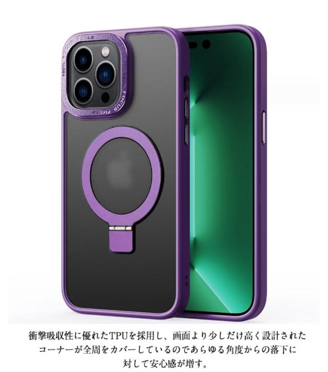 iphone15 pro magsafe 対応 カバー 耐衝撃 MagSafe iphone15 ケース iphone iphone15 ケース リング付き スタンド マグネット アイホン15 pro レンズ保護 一体型 カメラ保護