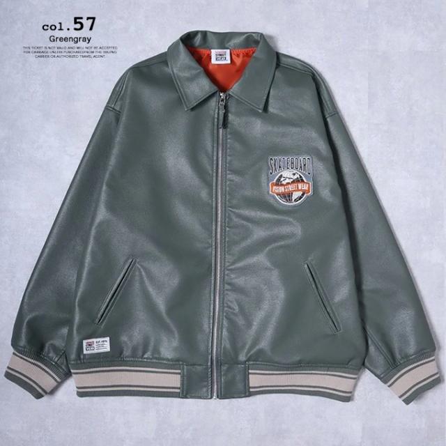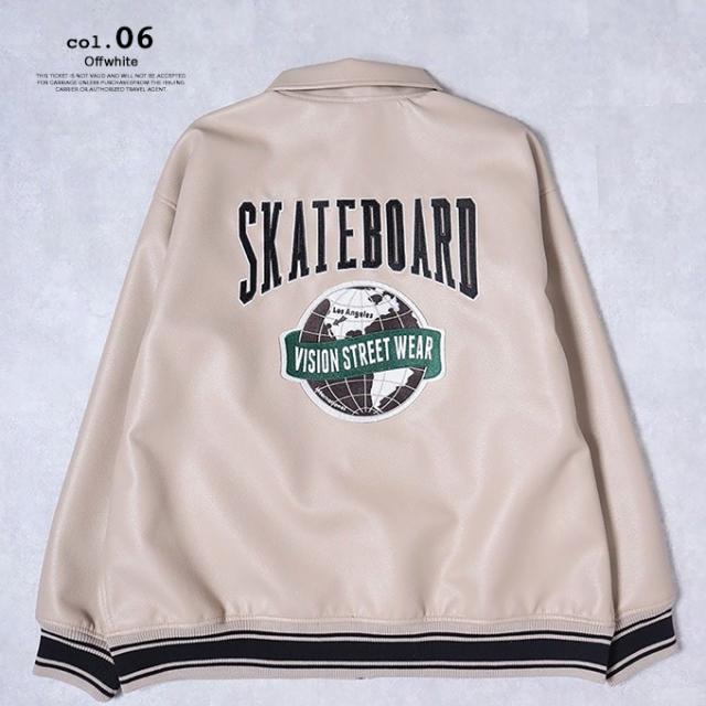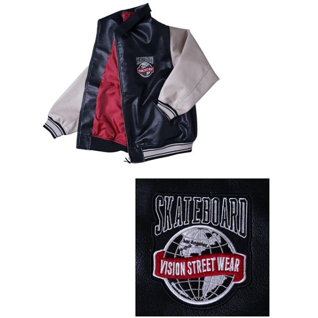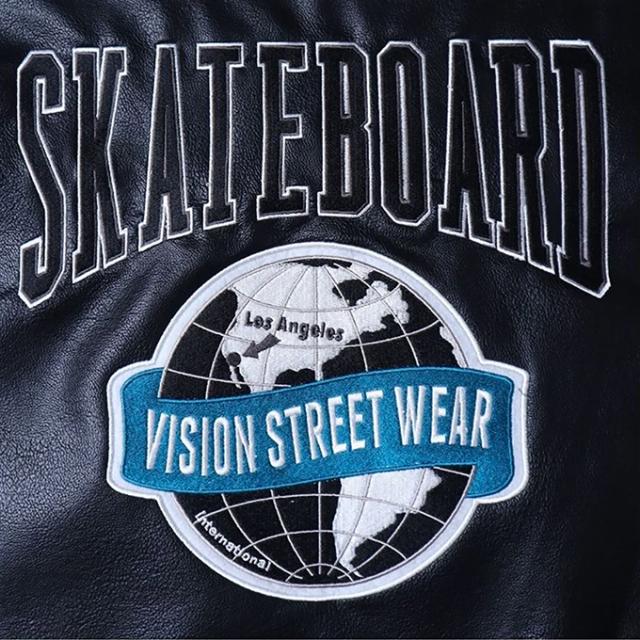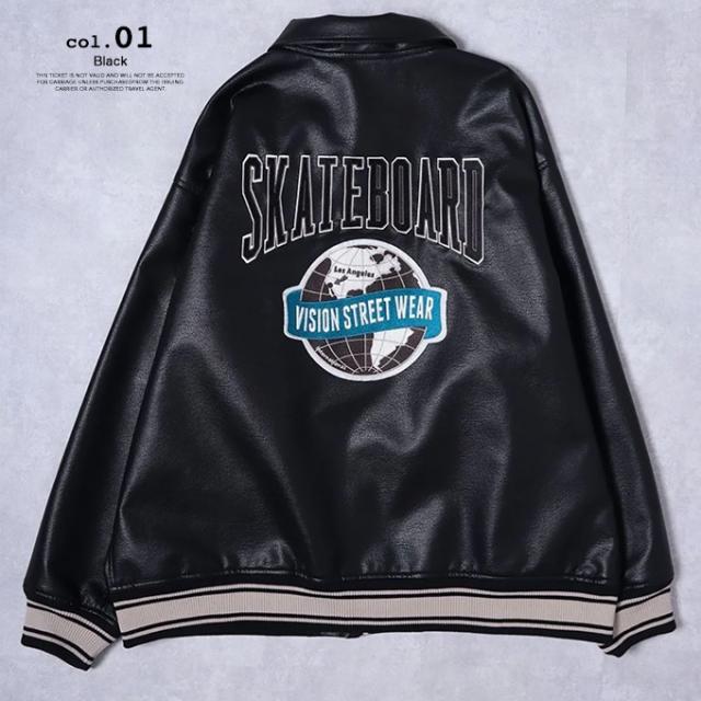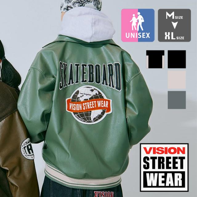【SALE!!】 「 VISION STREET WEAR ヴィジョンストリートウェア 」 フェイクレザー ブルゾン 3905012 / ヴィジョンストリートウェア フェイクレザー ジャケット スタジャン バーシティジャケット アウター 防寒 ユニセックス ストリート カジュアル スケーター 2023AW ※