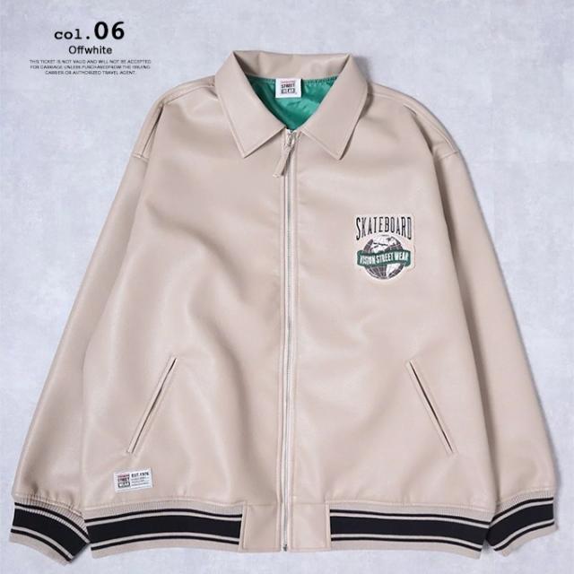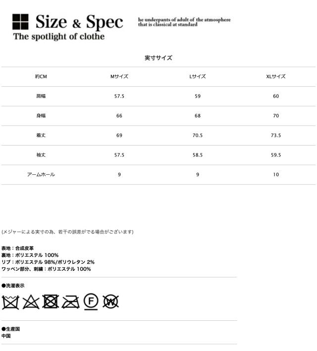 フェイクレザーを使用した高級感のある印象と背面には実績のオリジナルグラフィック刺繍したがブルゾン。