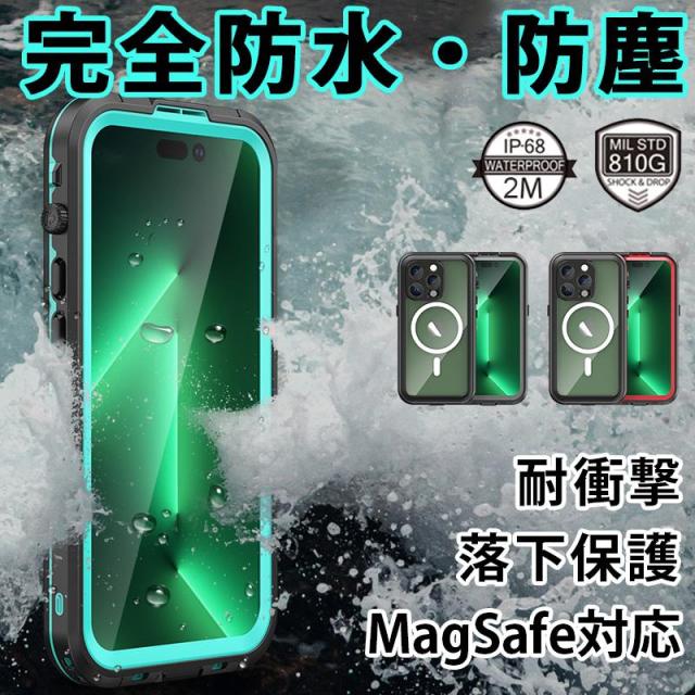 iphone15pro ケース 完全防水 IP68 iphone15 pro max ケース Magsafe 対応 iphone14 防水ケース iphone14plus フルカバー 耐衝撃 ブランド ストラップ付 軍用